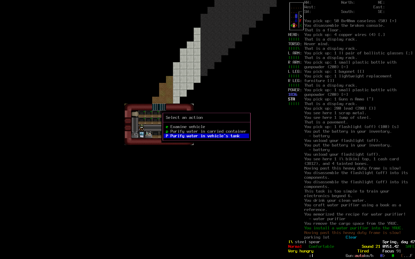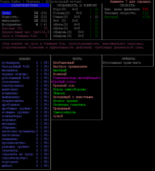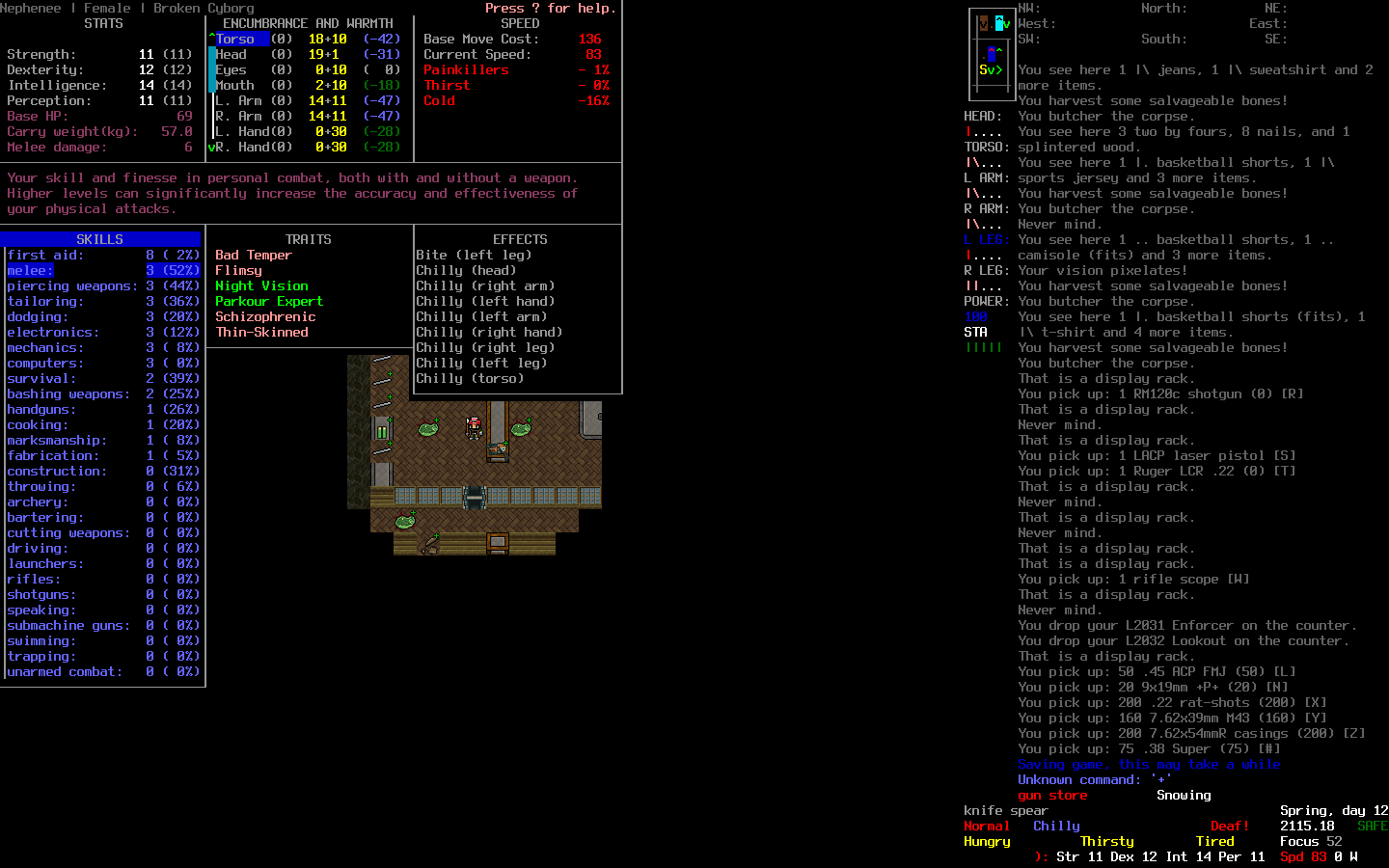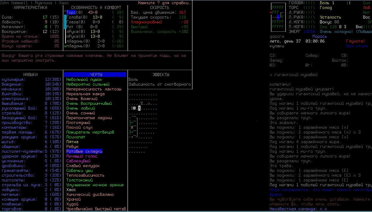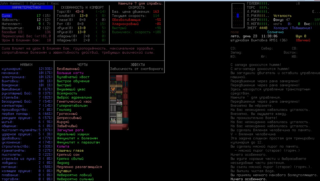 >>12300 Спаун мобов 2.0, раньше ставил 10.0, но я заебался зомборез устраивать. Остальное дефолт кроме орд. Вначале БЕЖАТЬ НА КРАЙ ЗЕМЛИ, иначе орды сожрут, если нашел LMOE\не убитую РАБОЧУЮ тачку - збс, не нашел - всё очень плохо. Сижу читаю мыльное книжцо, обмазываюсь тряпьём и шитьём, поначалу только мили. Затем приходит время искать машину, т.к. база обычно в глубоком лесу, а играть в змейку с тележкой в лесу надоедает очень быстро. Нахожу машину, ремонтирую, перетаскиваю барахло с базы в машину и иду по грибы лабы и прочий эндгейм, упор на бионику, хотя мутации не возбраняются, но там слишком много раздражающей хуеты типа травоядного\плотоядного, зависимость\непереносимость солнца, всякие дебафы на скорость. Обычно игра заканчивается когда я нахожу любой арт на инвиз, захожу в города только чтобы пожинать зомби электронщиков ради бионики, мне надоедает, я прекращаю играть и начинаю по новой в новой версии. Статы через скиллы. Если мне понадобится уберменш - я пойду варить мутаген альфача.