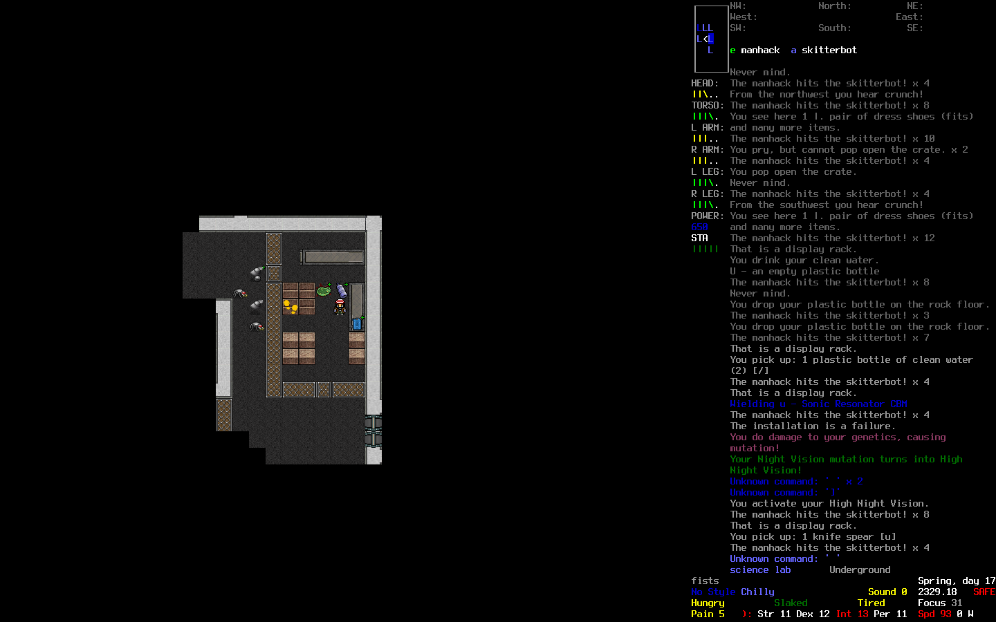 Уууууу блядь. Ебучий некрополь. Ебучие z-уровни. Мало того что персонаж слышит сквозь все этажи, так от этого говна ещё и вылетает каждые пять ходов. Сделал себе затычки, теперь вылетает каждые двадцать. А я просто банк хотел ограбить, мне это подземелье не всралось.
