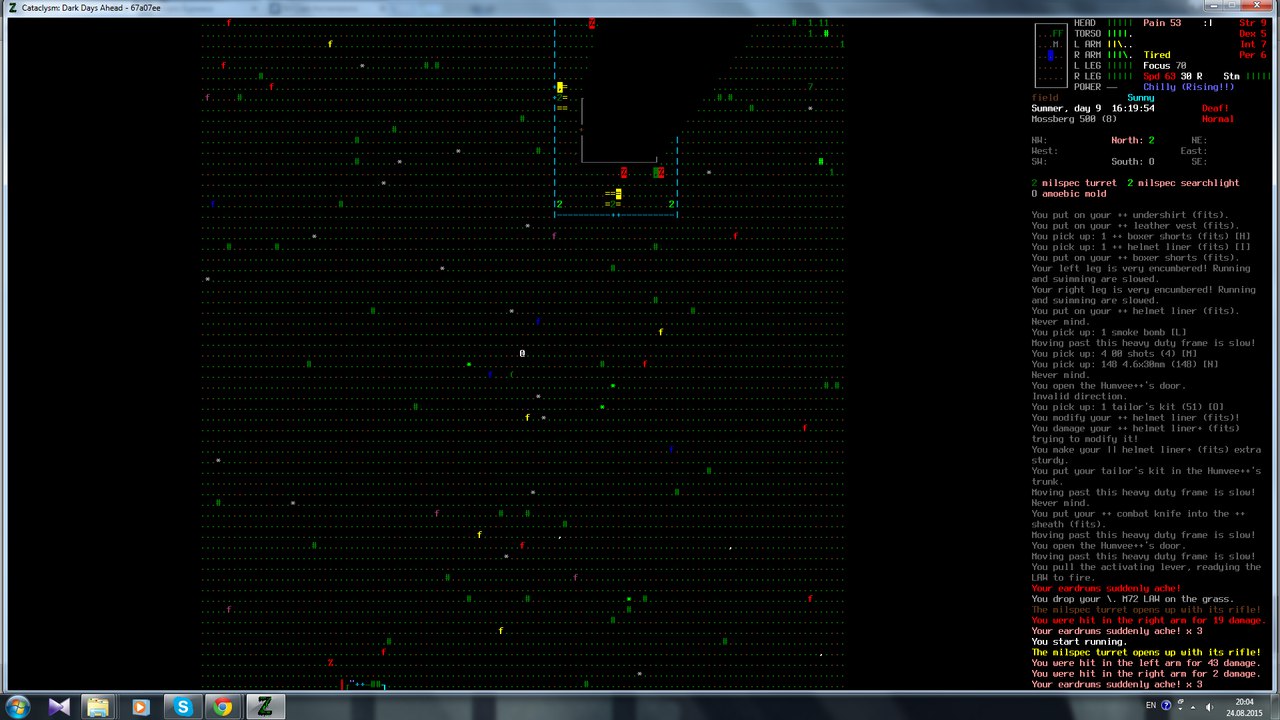 А что, ты хочешь замечательных историй? Ну держи. Решил я, в общем, пикинера в тяжёлой броне выживальщика отыграть, заодно попробовав этого нового broken cyborga. С одной стороны, дерьма наваляли прилично. Бионика мешает спать, мешает жить, мешает воевать, мешает, короче. Здоровье мееееееедллеееено, аки слоупок на марше, убывает, а кислота ещё меееееееееддлллллеееееееннннееееееееееее убивает чара, так медленно, что хватает времени на поиск всех необходимых книг, их чтение, сбор аптечек и итоговый выпил.
