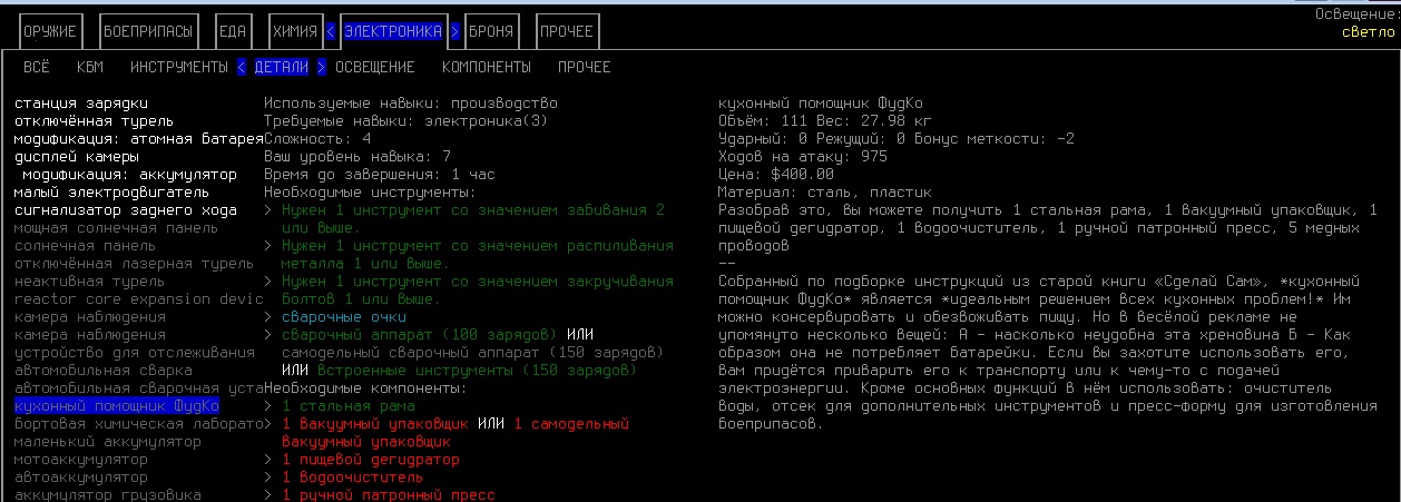 Ньюфаги, не забудьте полутать дом с красным ковром. Там всегда ништяки, куча взрывчатых веществ, компонентов. >>12431 >Качаешь электронику -> полезные устройства, НВ, ИК очки, и рельсотрон. Ноктовизор и противогаз в первые дни игры добываются в пожарках, это мастхев.