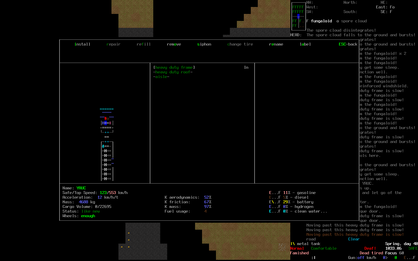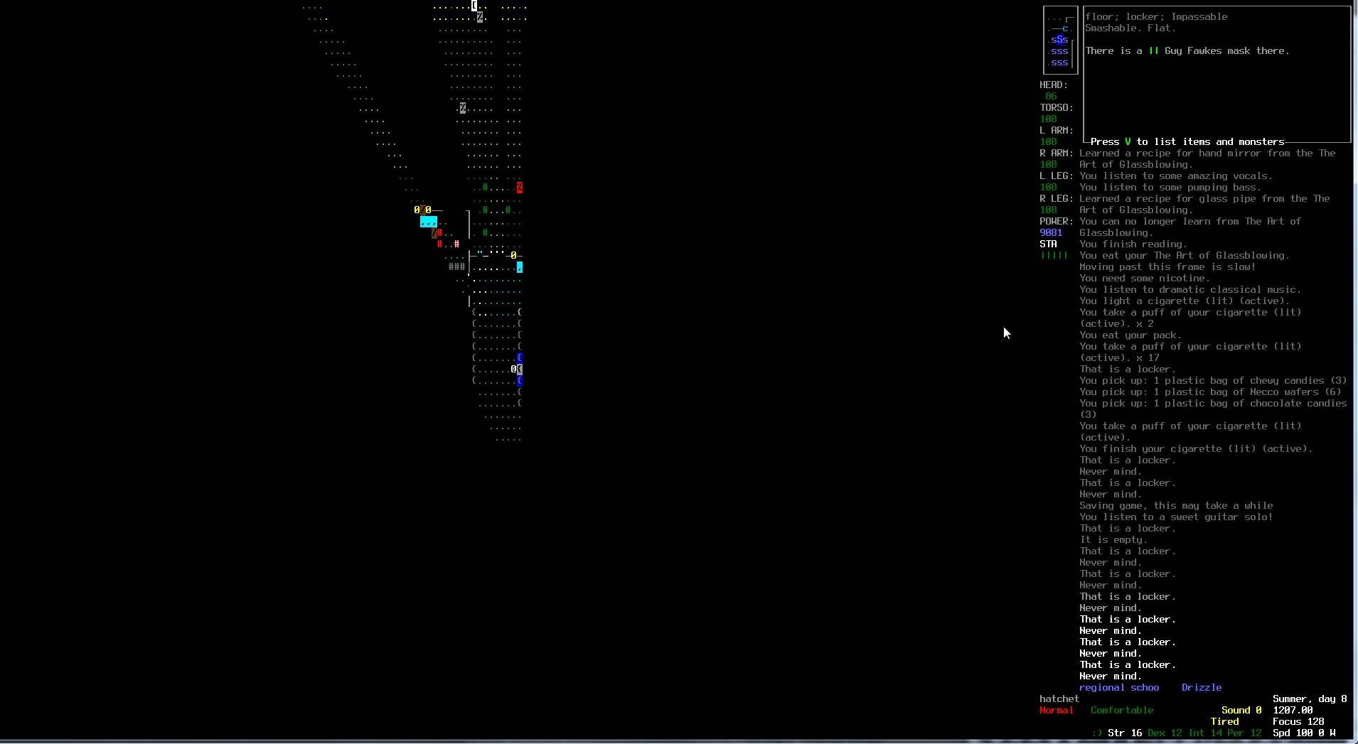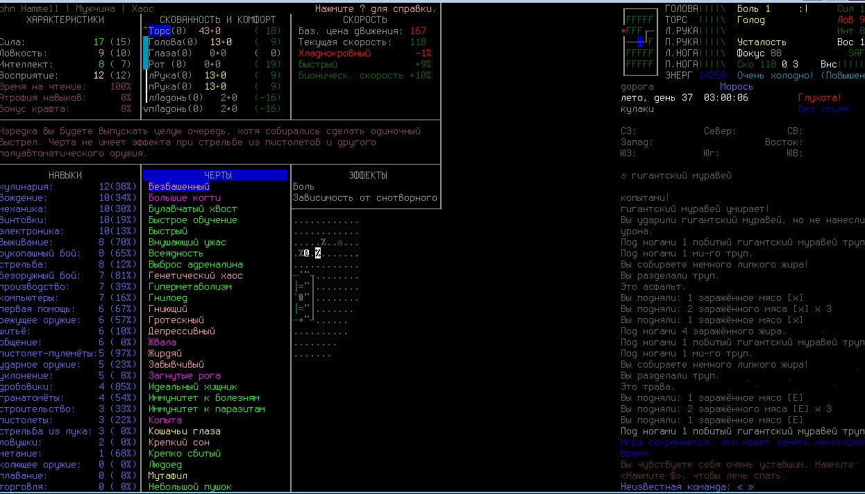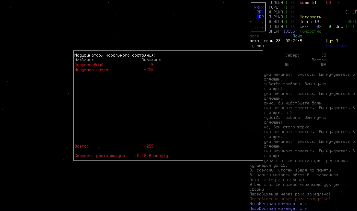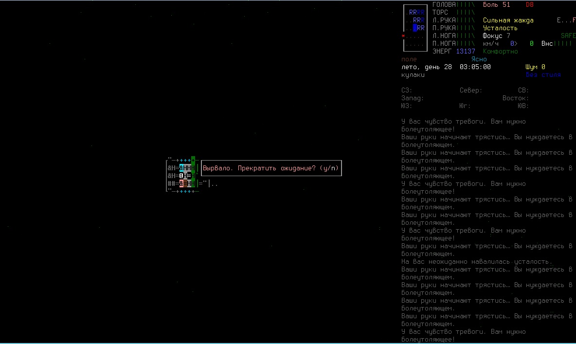У меня ломки были пока рогаликодоска валялась, на компе две папки с разными версиями игры, в одной из них был старый сейв и я его переместил в новую версию, думал мой нынешний блять. В итоге я стою возле сранного города но уже не в окружении фунгалоидов пока, шпиль нашел, уже приготовил тактический ядерный заряд. Пойду разнесу питушиную рощу. За то на колесах опять котоны! Пропало ночное зрение правда, хреново. Химера не предсказуема. Пойду посплю а то разлагаюсь лол. Ну и маковую таблетку накачу. Кстати, не жрите много амбиена у кого бессонница а то будет как на втором скриншоте.