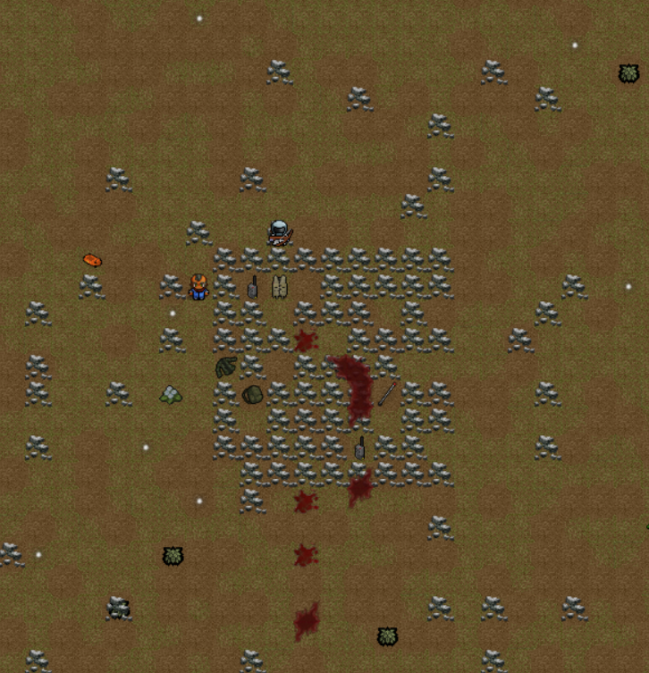 А чтобы убить собаку, менхак, белку, любую хуйню у которой децл хп и куча уклонения, если у тебя торс сильно нагружен, просто бросай в них камни, ножи, кастрюли, любую хуйню из инвентаря что хоть как-то дамажит, по соседней клетке гораздо проще попасть броском чем мили атакой