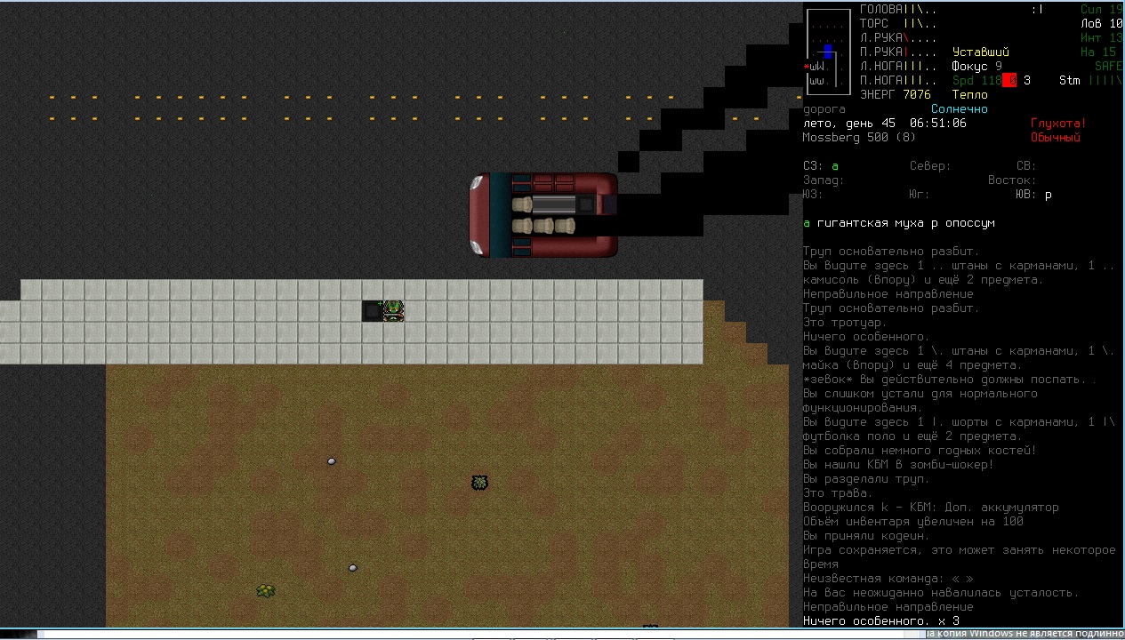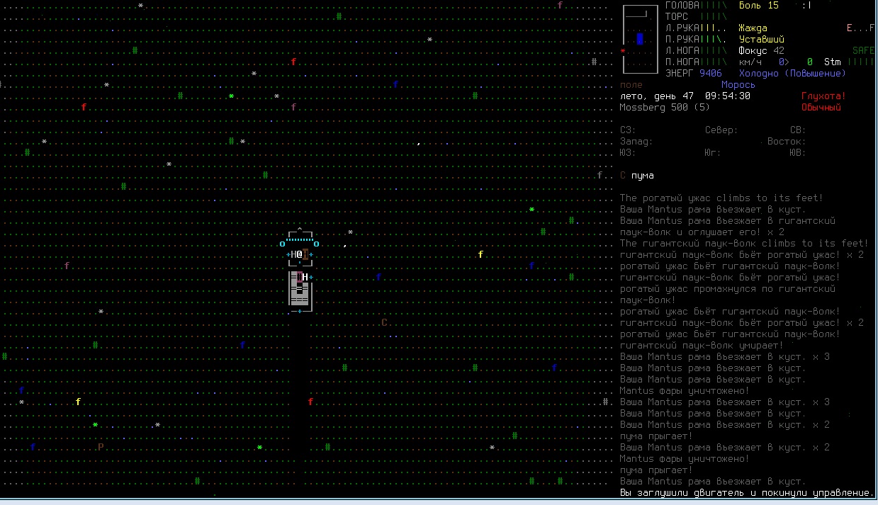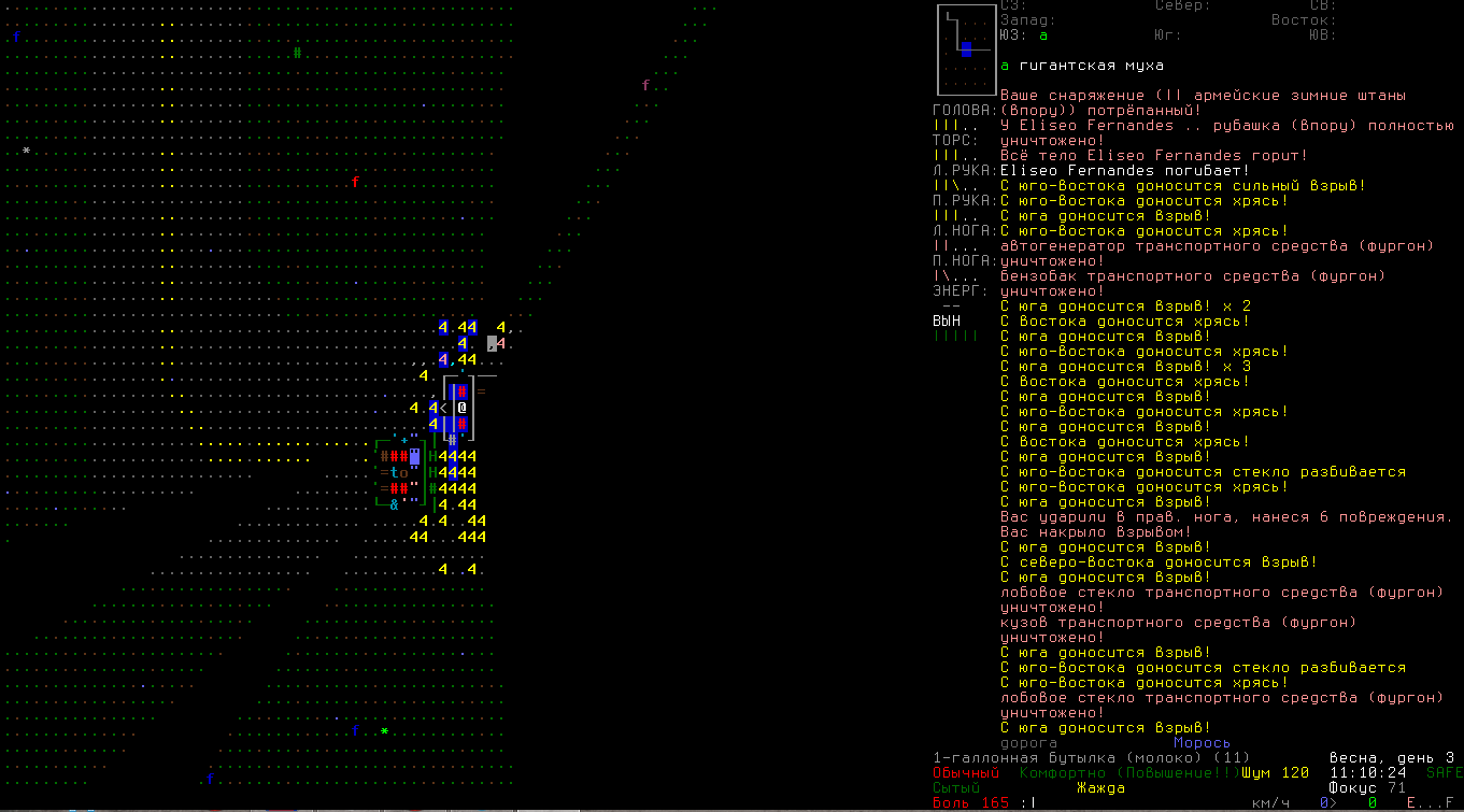 Короче шел по пустоши этой, жрал мимозомби всяких разных. Нашел лагерь военных, расшатал полностью но толком ничего не нашел за то отъелся, на севере ферма, отоспался серьезно так, съел овцу и продвинулся дальше. Нашел еще машинку, на ней добрался до шахты где стояла медицинская тачка, захапал, заправил (на 40% бензином). В городе хардкор был вообще, в 3 часа ночи прояснилось (?), напала вся хренотня что там лазала. Пытаться буду теперь выйти отсюда блять. Еще я стал здоровым как пельмень, эти мутации сведут меня с ума.