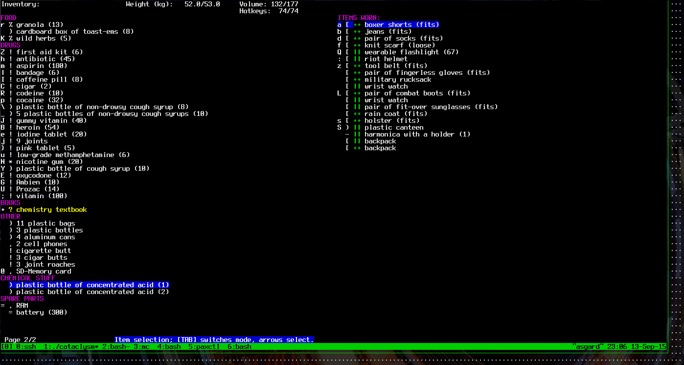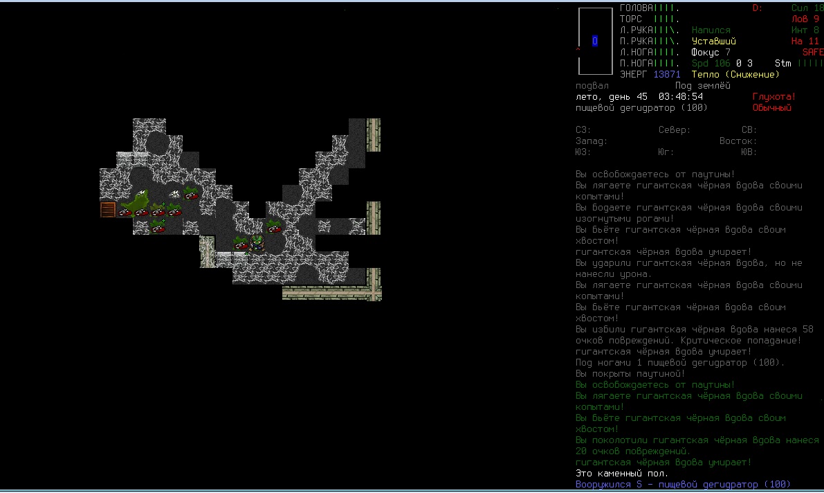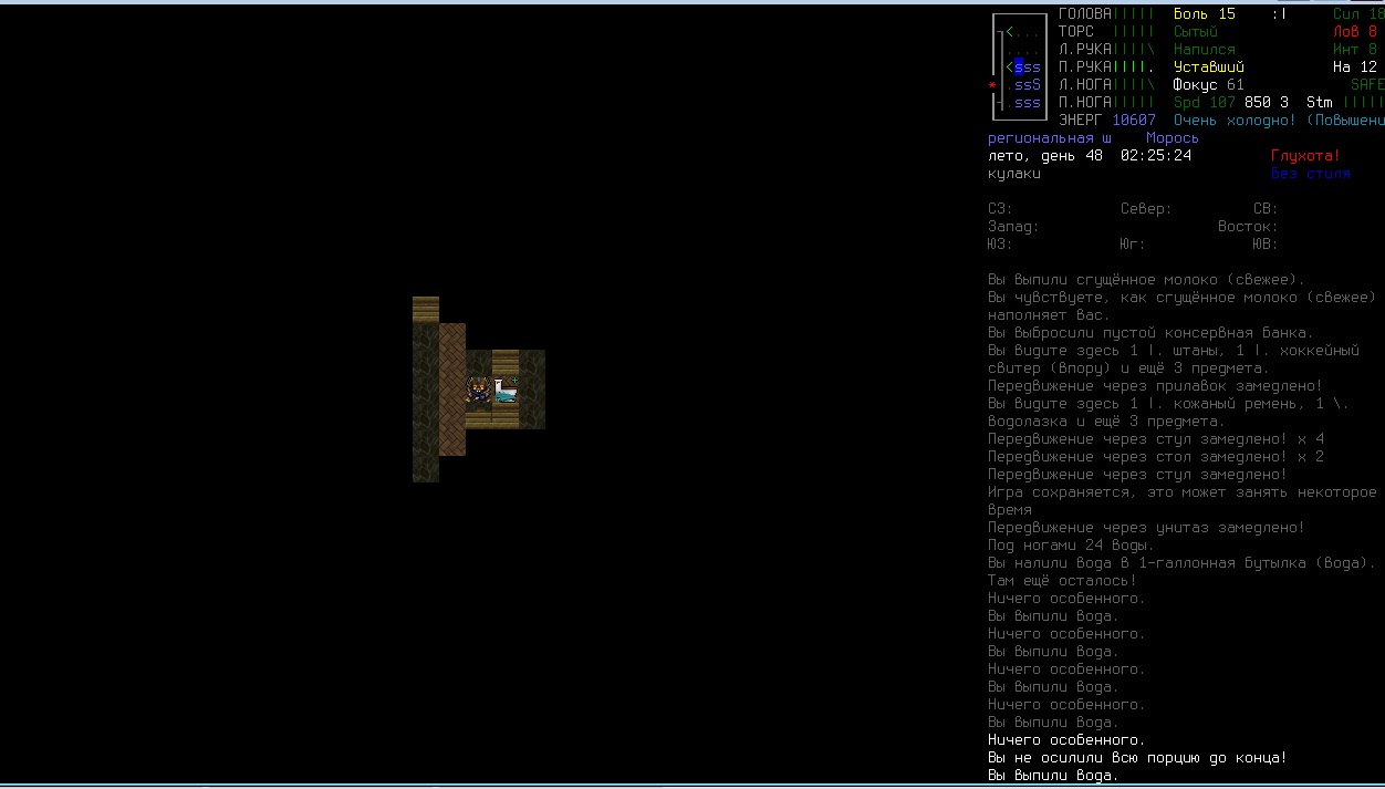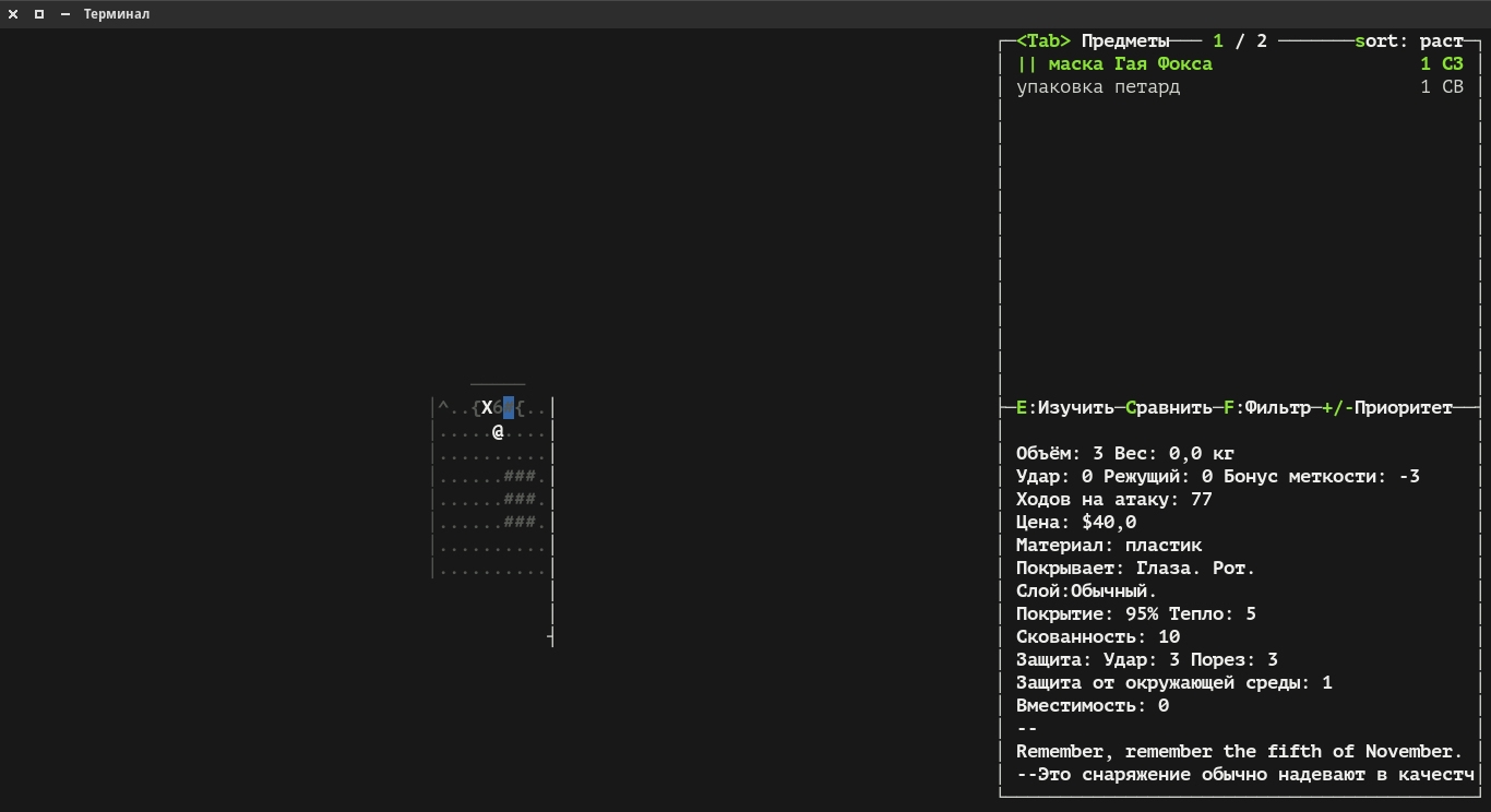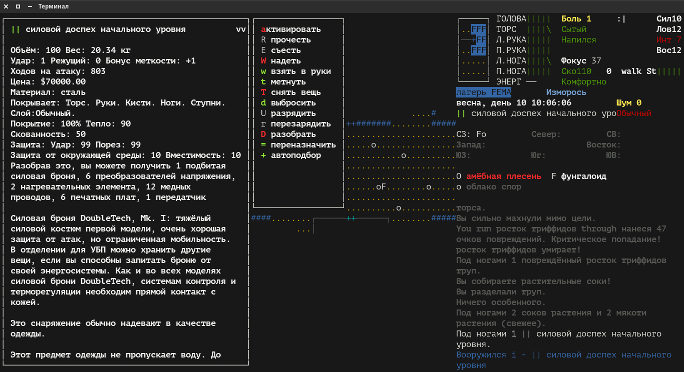 Сataclysm DDA -- это уникальный рогалик включающий в себя нестандартный сеттинг, полностью открытый мир, широкую систему крафта, строительства и конструирования автомобилей. Окапываемся ямами с точёными пиками в лесном домике, коллекционируем музыкальные инструменты в своём особняке, строим слизедвигатели, приручаем котиков, бреемся и стрижёмся. Отыгрываем фуррей, слизней, жрём странные ягоды, варим динамит из мыла, пытаемся убежать от предаторов. Теперь со вкусом фунгицидного газа, васянотанков и необучаемости!
