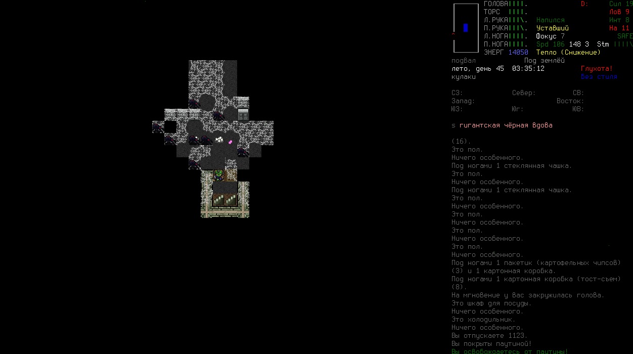 Лол, пауки всё тащат к себе. Нашел пищевой дегидратор, пригодится для создания ФудКо, клёвая тема. Да я бы от кота автокухни не отказался пока. Варю в кастрюле мясо и макароны по флотски, рис с мясом и остальное такое мясное. Доширак еще запитонил, доволен как слон. Яиц наберу, пауканских, буду яичницу делать, а пока меня эта паутина кругом уже бесит, постоянно в ней валяюсь пытаясь выпутаться. Да и самих пауканов тут что-то много, просто улей какой-то.