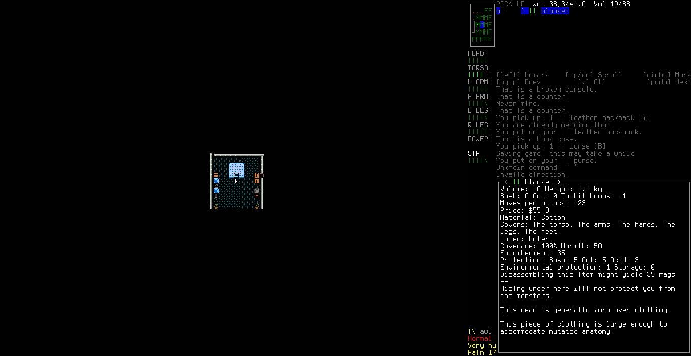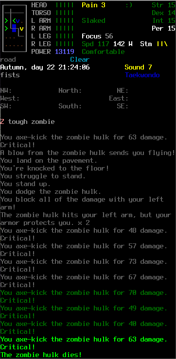 >>14017 >Какое самое лучшее оружие в самом начале игры против толп зомби? Роликовые коньки. Можно взять профессию "черный пояс" и прописывать зомби в щщи с вертушки прямо с первого дня. >>14044 >Кстати, под покрывалом можно прятаться? От зомби вроде нельзя. Если свалить покрывал, подушек и прочего барахла на тайл где ты спишь, персонаж будет сам накрываться / раздеваться в зависимости от температуры.