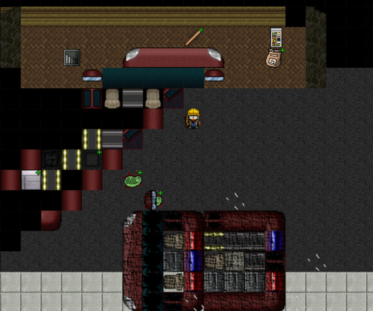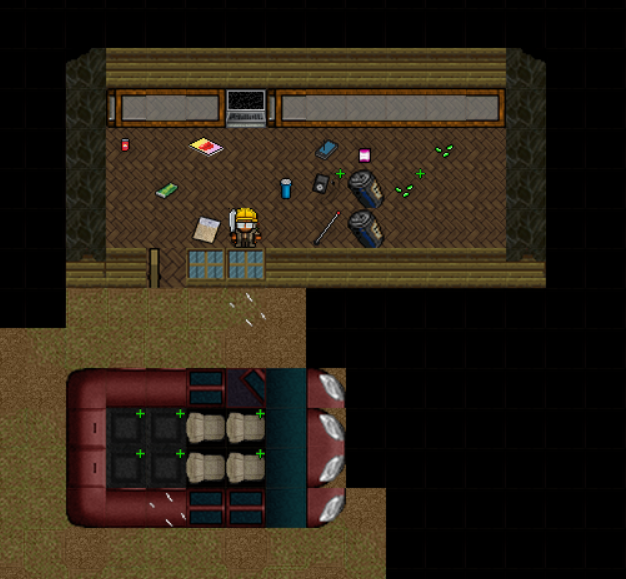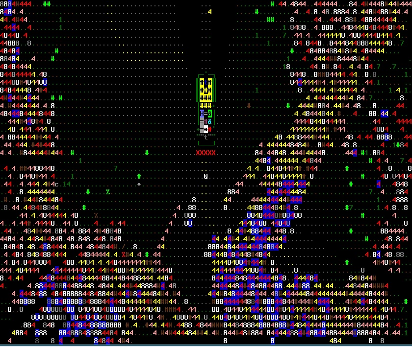 >Just merged coolthulu's nice looking start at drawing lower levels instead of "open air" tiles, and a bunch of enhancements to climbing. Now you can walk up to a ledge and 'e'xamine off the edge to get a prompt to climb down, with a nice message estimating your chances of getting back up and/or hurting yourself. You can see outlines of vehicles and terrain on lower levels, with a cyan background to let you know it's not the same level. Finally some neat utility stuff, you can park a car next to a building to help you climb onto the roof, though most buildings don't have roofs