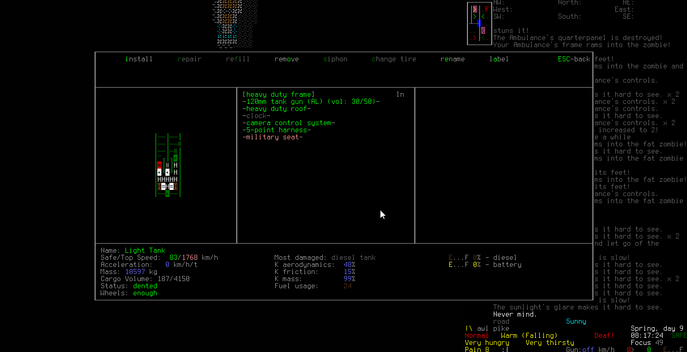 >>13992 >Машину оставил за городом но не могу найти где, хожу кругами. Долбаная забывчивость. http://cdda-trunk.estilofusion.com/veh_tracker >>13993 >На третьей бионика, боялся всё ставить, анон пояснил по хардкору что надо делать чтобы вставить. Инта, механика, электроника, первая помощь.