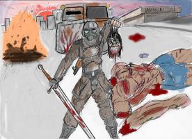 Получил в очередной раз по морде, на этот раз от зомби амбала, улетел в кусты какие-то. Хвостом и рогами убил засранца. Пошел в реку возле города, плюхнулся и напился до отвала. Тележку поломали совсем, буду искать новую теперь. Поспать бы где-нибудь. Машину оставил за городом но не могу найти где, хожу кругами. Долбаная забывчивость.