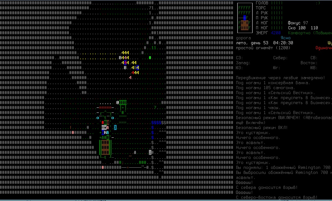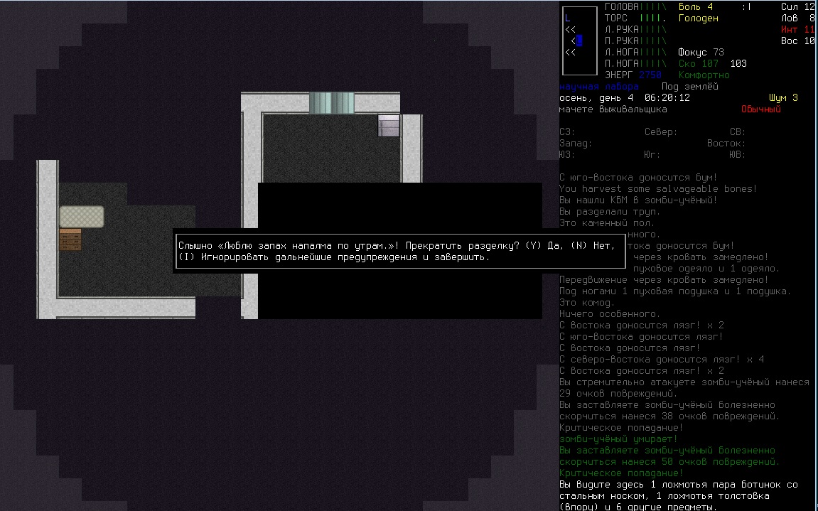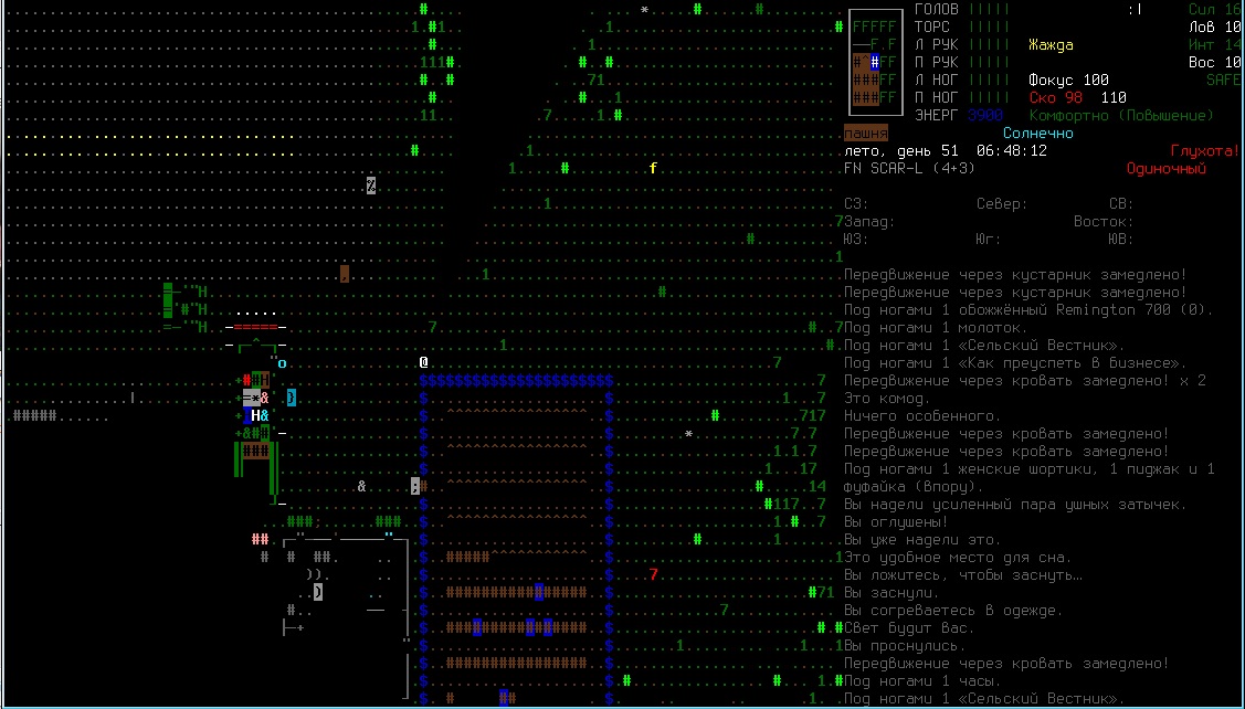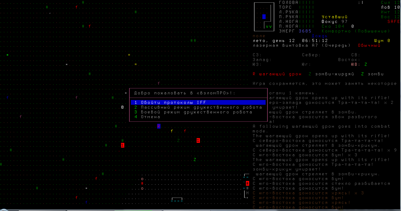 По игре - луки пока все так же тащат, хотя качать их стало в разы труднее. Порадовал в этом плане момент с фабрикэйшеном - теперь до десятого левела тупо крафтя древки для стрел просто так не поднимешься. Еду вообще стало поразительно легко находить. Захотел - подстрелил, захотел - нарыбачил, захотел - в автомате купил, захотел - накрафтил нафиг. Впрочем, в этот ран игра меня как-то слишком полюбила - первое что нашел при выходе из убежища - гору трупов в кевларе. В третьем обысканном доме, в подвале - склад оружия с катаной в довесок. Опять же, от Робоцыпа умудрился дворами свалить. Еще вопрос - с зомбей мне часто выпадают карточки с просто каким-то нереальным балансом под сотню штук. Так надо, или я опять везучий?