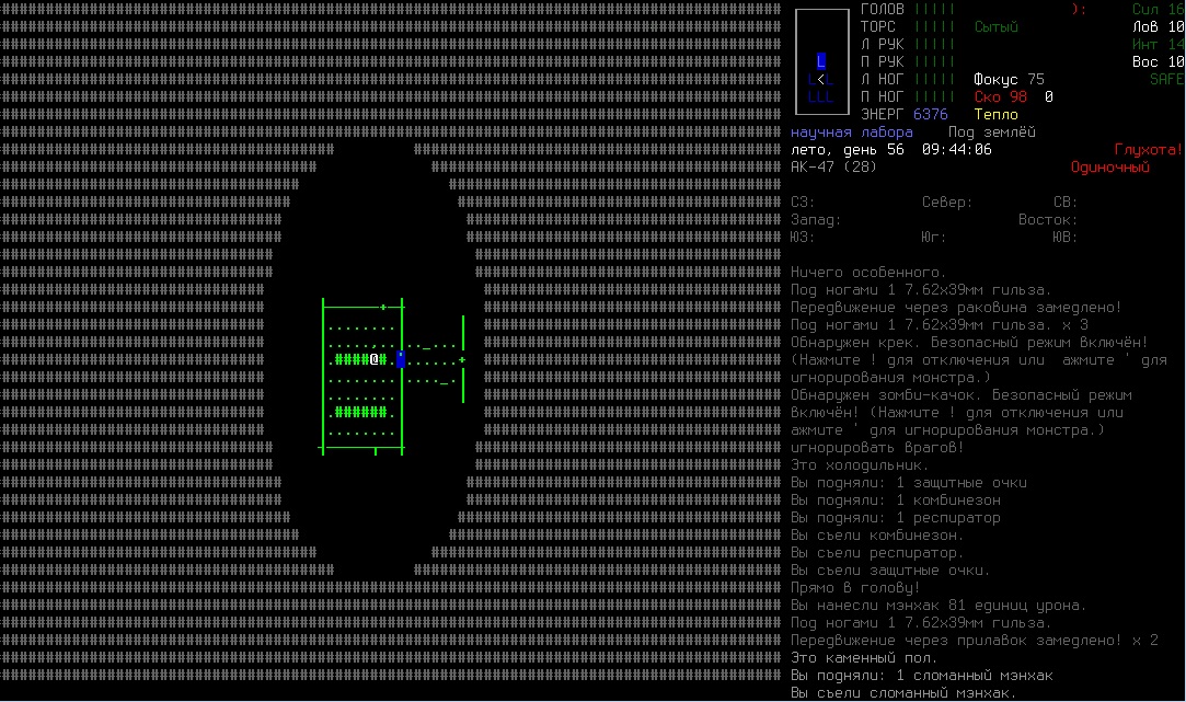 Теперь я у мамки зверолов. Первую ночь провел в стартовом убежище, дальше поселился снова на пашне, так как это единственный вариант на данный момент, да и грех отказываться. Нашел несколько карт от лабораторий, но дальше первого уровня лезть не собираюсь, это мне не к чему. Там темно, жутко и из мрака бросаются упыри в лабораторных халатах.