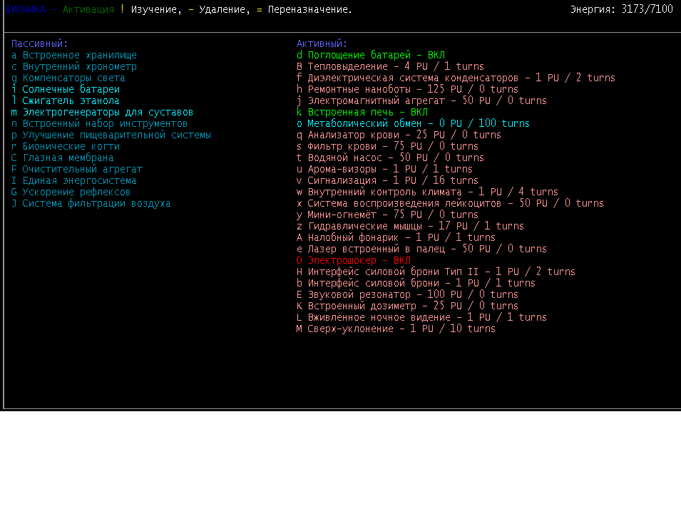 >>1928 Ну да, напомнил как я тоже так же залетел, только тогда было автосохранение и подвисон на несколько секунд в которые я пару раз нажал "вперед". Хорошо что наноботы спасли. Короче, раз уж я стал на путь поехавшего киборга и уже не совсем человек если вы понимаете о чем я то поясните мне про интерфейс силовой брони. Включаю его в броне, тратится энергия, выключаю- не тратится а все то же самое, то есть совсем не пойму. В этой консервной банке жарко и вообще поясните про паверармор. Там же должно по идее охлаждать наверное, микроклимат какой-то. Ну или типа того. Вроде как батарейки нужны написано но ведь от меня питается. Еще вот упоролся теми самыми дивными ягодами которые нашел на кустах с трупом поблизости, повышают настроение и не только. Анон предупреждал ((