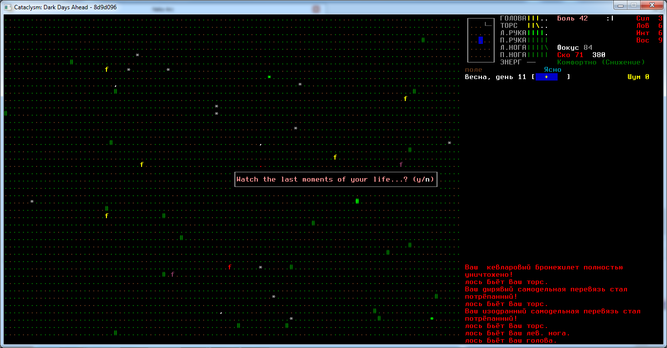 Как же трудно в начале игры удержаться от того, чтобы ПОГУЛЯТЬ рядом с мэнхаками, волками, осами, лосями, пчелами, ми-го, зомбарями, турелями, всем-всем-всем-всем. Ебаные суицидальные порывы, надо отыгрывать параноика... нуб