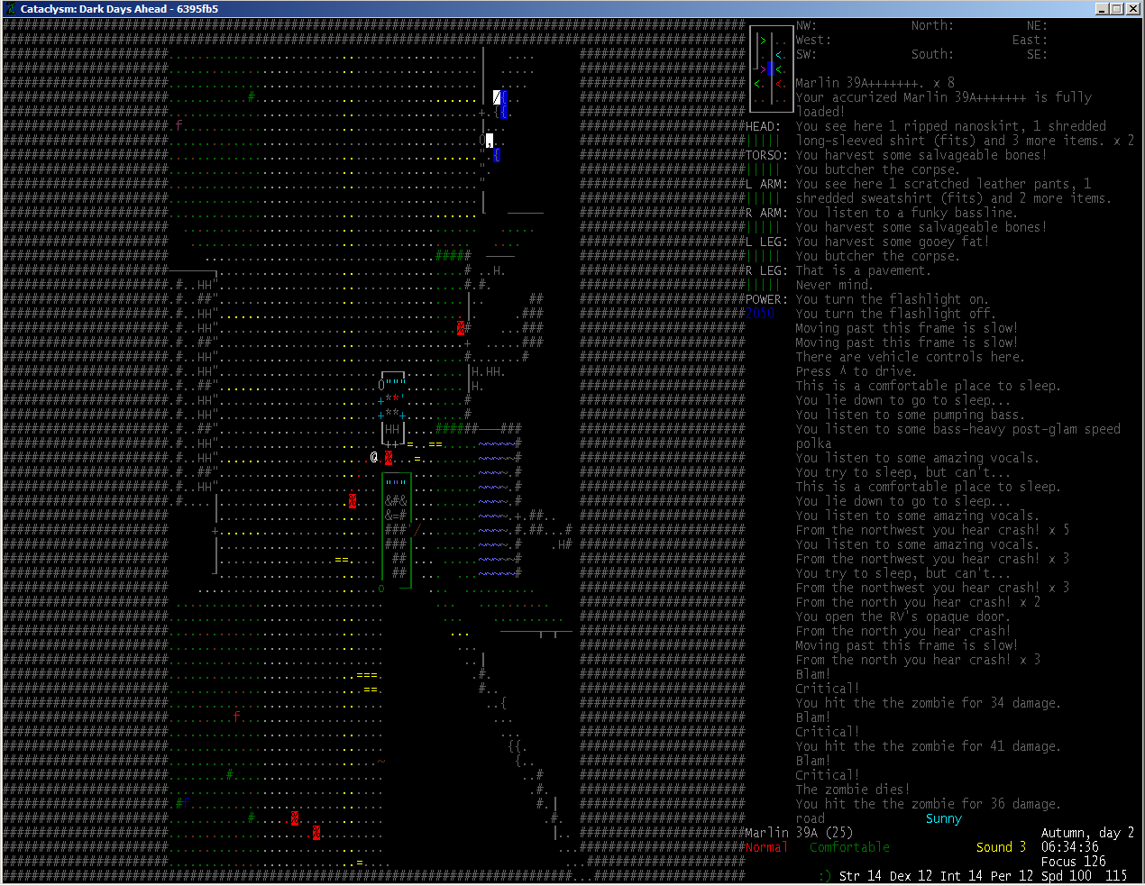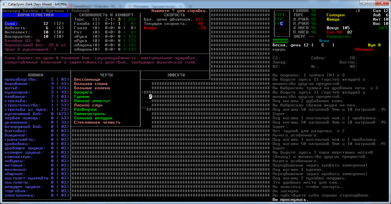 >>2618 Двачую верхнего, вначале важнее всего шитьё. Теперь про борьбу со скованностью. Вот идеальная одежда для начала игры: штаны с карманами, толстовка, плащ и рюкзак/военный рюкзак. Скованность дадут только рюкзаки, потому что у всей одежды слои разные и общая вместимость будет 47 плюс 48 от рюкзака или 80 от военного рюкзака. Очень важно надеть что-нибудь на голову. Армейская каска и защитные очки подойдут идеально, но если не сможешь найти, то скрафти кожаный шлем. Ещё очень важная вещь: каждый элемент одежды необходимо усилить. В этом случае обычные зомби не практически не будут способны её прокусить. Я всегда воевал без стилей и в этом случае для начала будут идеальны боевой нож или мачете. Потом можно заменить на катану или палаш. Если же ничего такого под рукой нет, то можешь скрафтить копьё из лезлвия газонокосилки. Если и этого нет, то ходи с трубой в руках. Когда навык рукопашного боя дойдёт до 6-8, можешь попробовать веселиться и драться без оружия. Сам не заметишь как быстро прокачаются навыки, а если хочется ускорить процесс обучения, то ходи с включенным плеером.