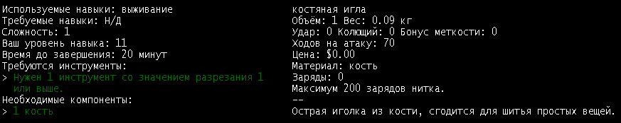 >Косточка есть, теперь бы сделать иголку и не зафейлить. Деревянная игла крафтится на первом уровне производства, с ноля до единицы производство гриндится рыболовными крючками, которые крафтятся из гвоздей камнем.
