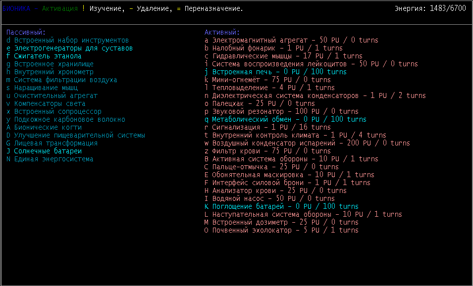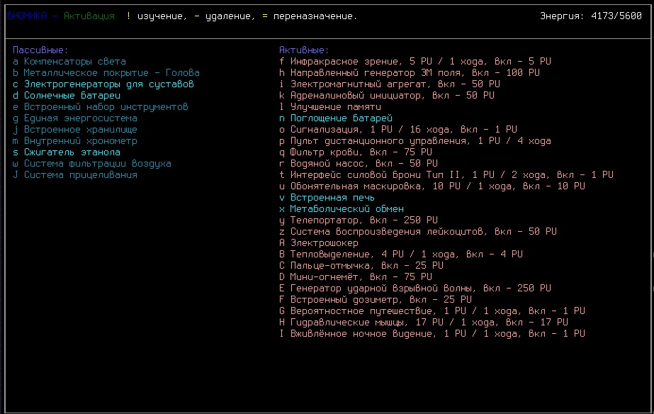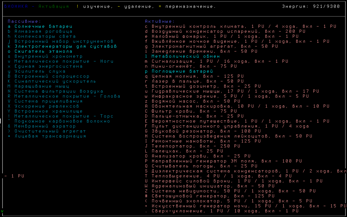 >>1947 Электроникой особо не полюзуюсь, всякими там бластерами и тд. Для бионики использую внутреннюю печь, пожираю одеяла, подушки, доски в лабах и батарейки. Плутониевых накопил 90 штук. Ввел сейчас сыворотку зверя, теперь воняю и чаще сплю. Не порядок.