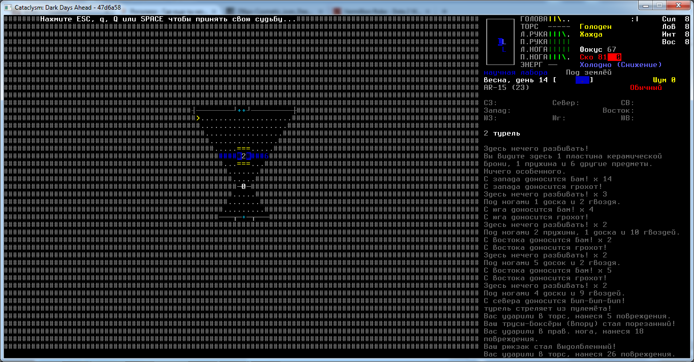 Спускаюсь вот в лабу. Забыл переключить раскладку и сделал лишний шаг в направлении туррели. Словил две очереди. Хп не понизилось, а из одежды меховой плащ превратился в потрёпанный.