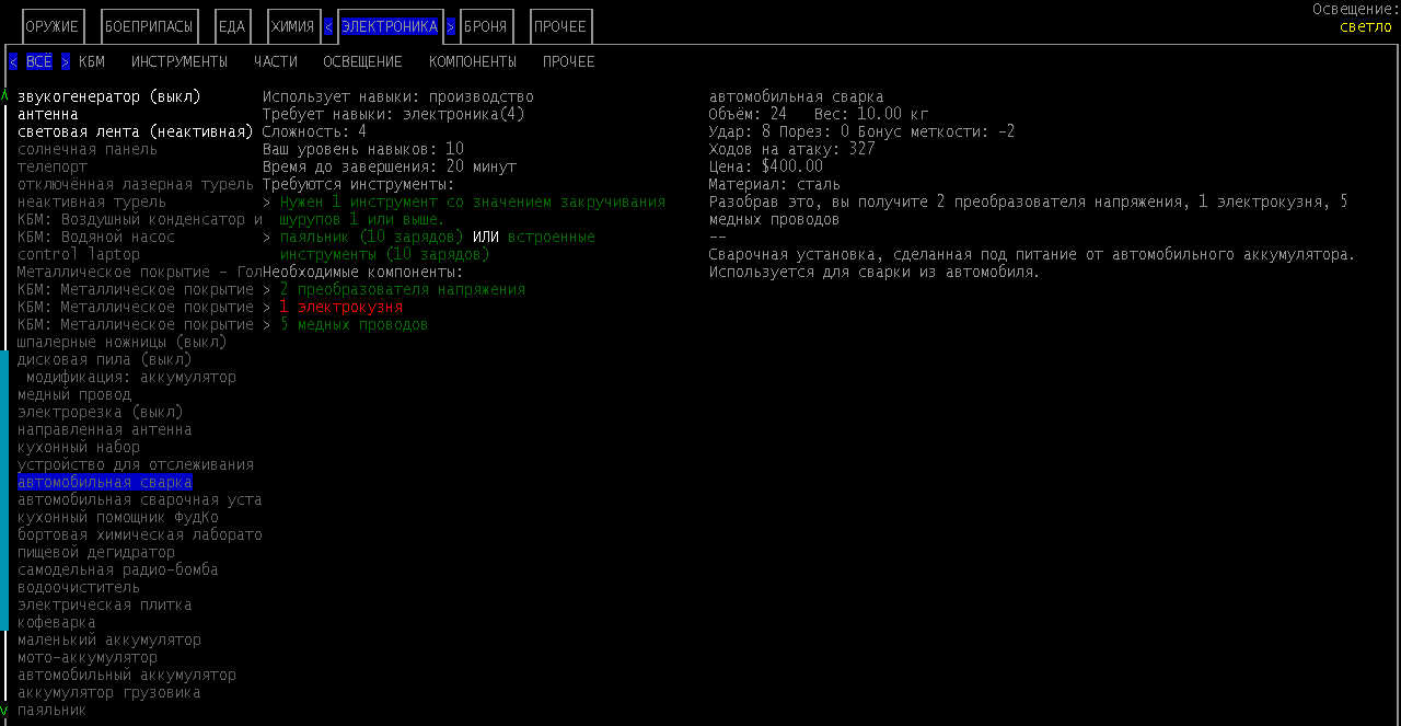 >>2012 Если начинать по сценарию "в убежище", то желательно поднять шитье на 1 - тогда в сумме у будет 3 уровень. Этого вполне достатночно, чтобы разобрать часть кровати и скрафтить начальный нормальный набор одежды да и мешок впридачу, практически не выходя из убежища. >>2015 Так оно не просто флешка, нужно собрать управляющий ноутбук, рецепт которого еще найти нужно.