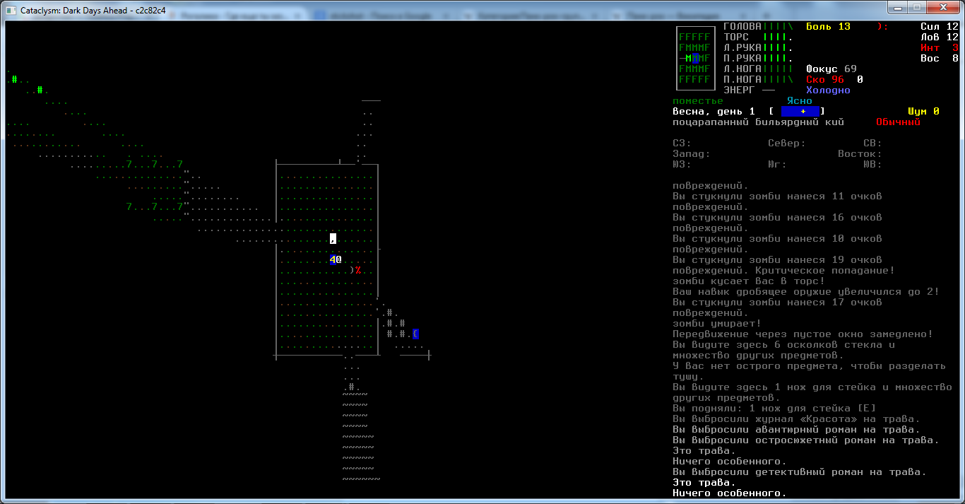 Съел еще одного туриста, отжал пушку с одним магазином. Пока шел в лесу не далеко нарисовался зомбимедведь и зомбиволк. Думал всё, пиздец. В итоге они друг друга увидели и начали драться, под шумок нырнул в лес и убежал. Патронов почти нет, скрафтил короткий но быстрый лук но вот стрелы отстойные совсем. Как так жить хрен знает. Не далеко находится поместье, боюсь туда идти т.к. зомботы толпы. Сделал несколько ящиков для одежды и инструментов, не знаю как качнуть строительство на 2 чтобы распиливать брёвна на доски, почти всю мебель сжег.