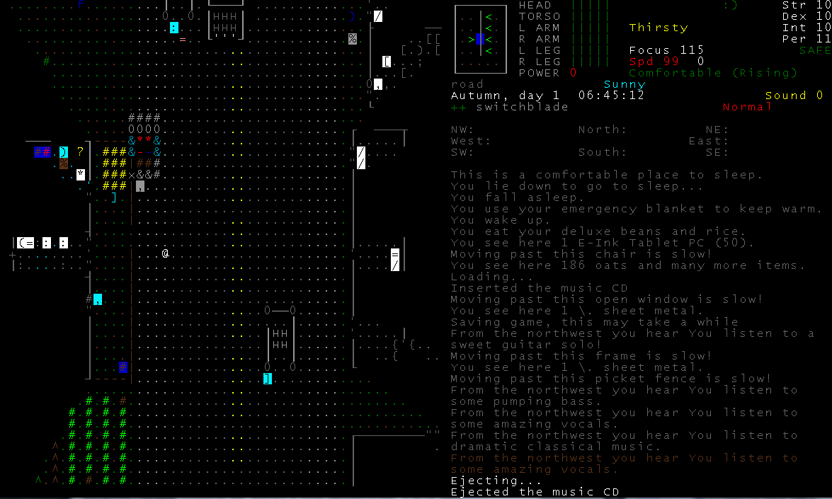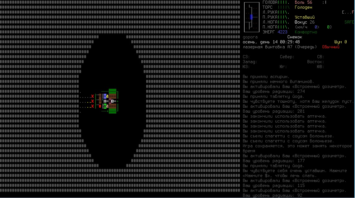 Впервые за все 5 дней игры(как ирл так и игровые) рискнул вылезти в город удачным рандомным персом. Быстро-быстро облутал магазин спорттоваров, надел ролики и был таков. Очень страшно, патронов уже не осталось, а стрелять из лука я не умею. Научился коптить мясо, но запас древесного угля вышел, а новый мне с днем с огнем не сыскать. На следующее утро решил разведать окрестности. Похоже у этой банды были времена и получше. Набрал целую гору амфетамина. Хорошо когда у твоего персонажа есть трейт психопата и он с одинаковым похуизмом может жрать человечинку и наркоту. Когда надоест суровое выживание буду закидываться в своем убежище...