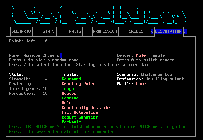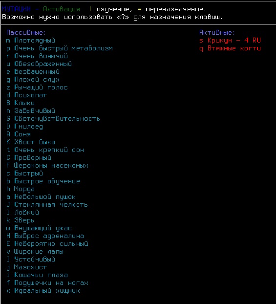 >>2594 Тогда тебе БТР-кун ещё насоветует. И под спойлер всё засуну, а то вдруг кто-то сам захочет наступать на грабли. Большинство мутаций ориентированы на мили. Всякие кошки, волки, медведи, ящерицы. Мозги включаются у осьминога, который способен отрастить до восьми щупалец и ударять за один ход КАЖДОЙ. Ещё мозги включаются у Альфы, это самая безопасная ветка, там просто статы апаются сильно и пара не очень мощных перков. Отрицательные мутации у Альфы тоже несильно влияют на игру. Из интересного: есть ветка для жизни под землёй троглобионт, с веткой растения можно быть растением; есть ветка, с которой ты будешь искать боль и наслаждаться ею медицина, ещё интересны птицы, они пиздецки быстрые и хрупкие, ещё можешь стать рыбкой.