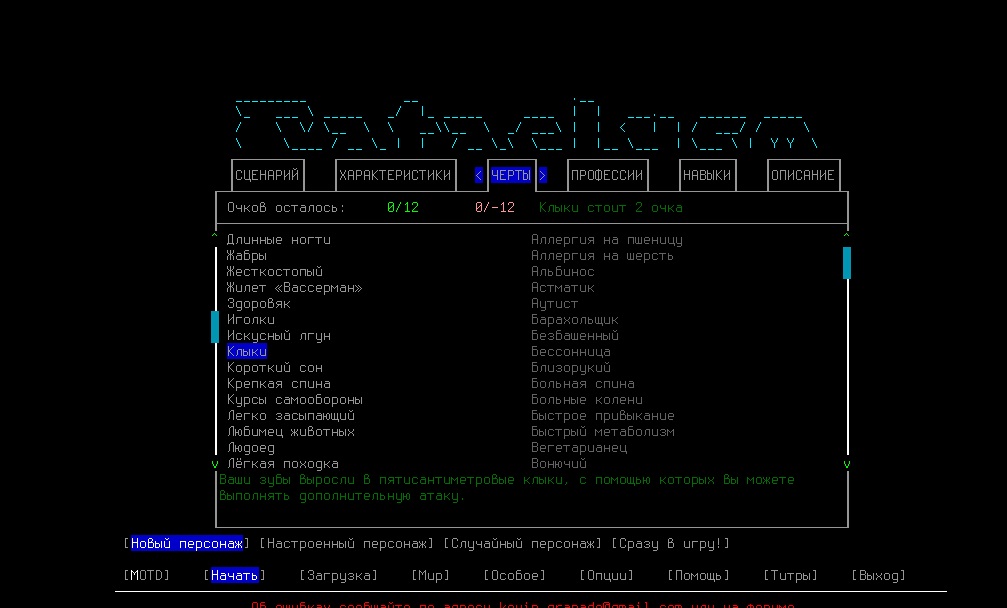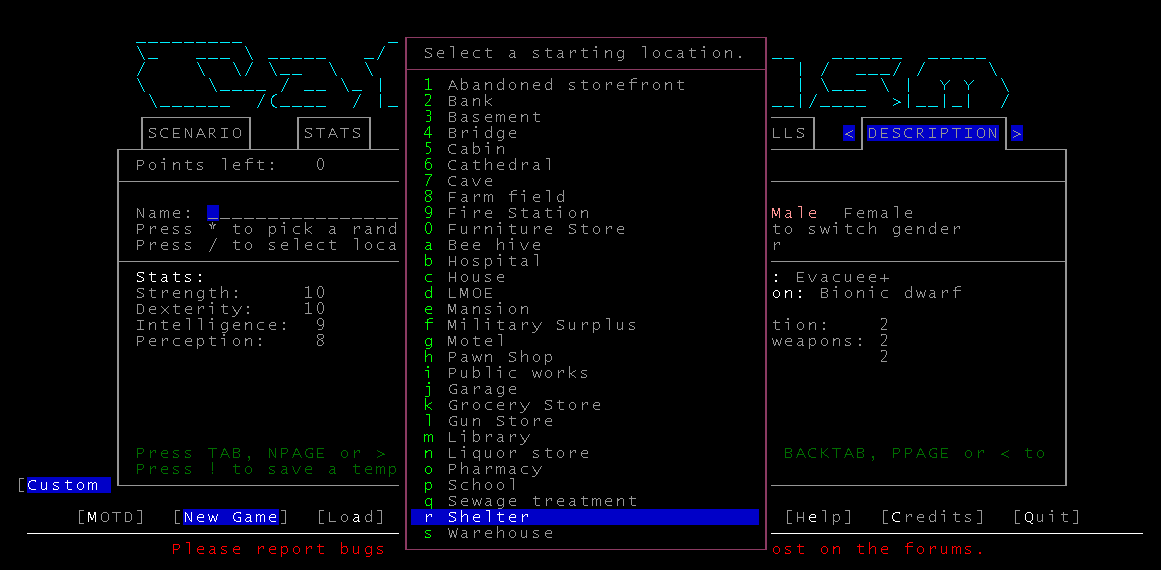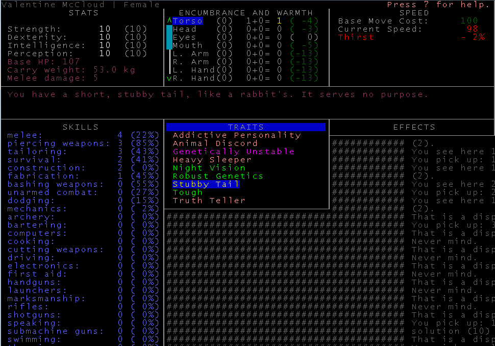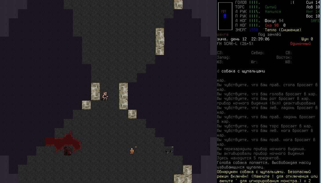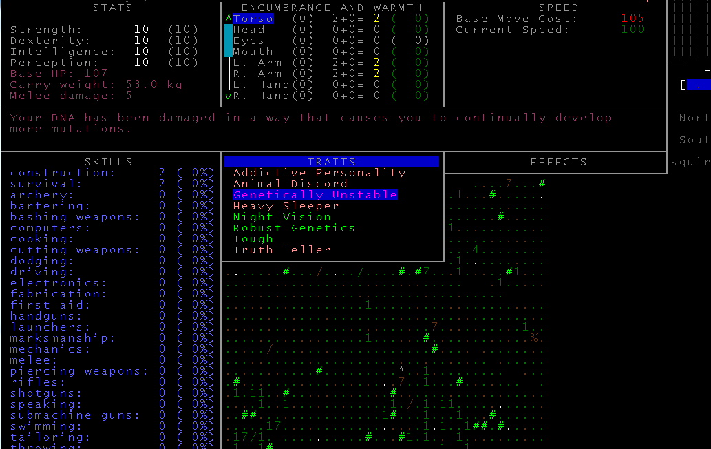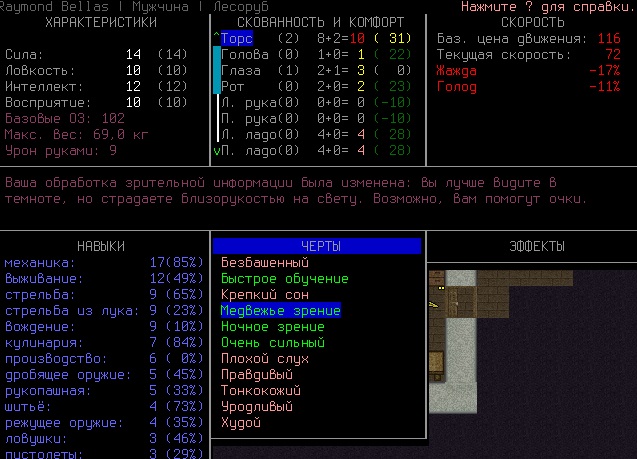 Кстати по-моему раньше не было возможности в сценарии лаборатории выбирать мутации, в последней версии 0.B я создал ебанное чудовище с медвежим зрением и клыками, такой-то аутизм. Ты начинаешь на -3 уровне походу после того как тебя, подопытного мутанта, выпускает из клетки сжалившийся ученый. Если бы этой тварью еще умудриться выбраться наружу- цены бы не было, такой-то ЗВЕРЬ! Хз, может кто-то и выбирался, к примеру если найти переносной телепорт лол, меня то турели шатают, то ебанные роботы охраны и другие напасти.