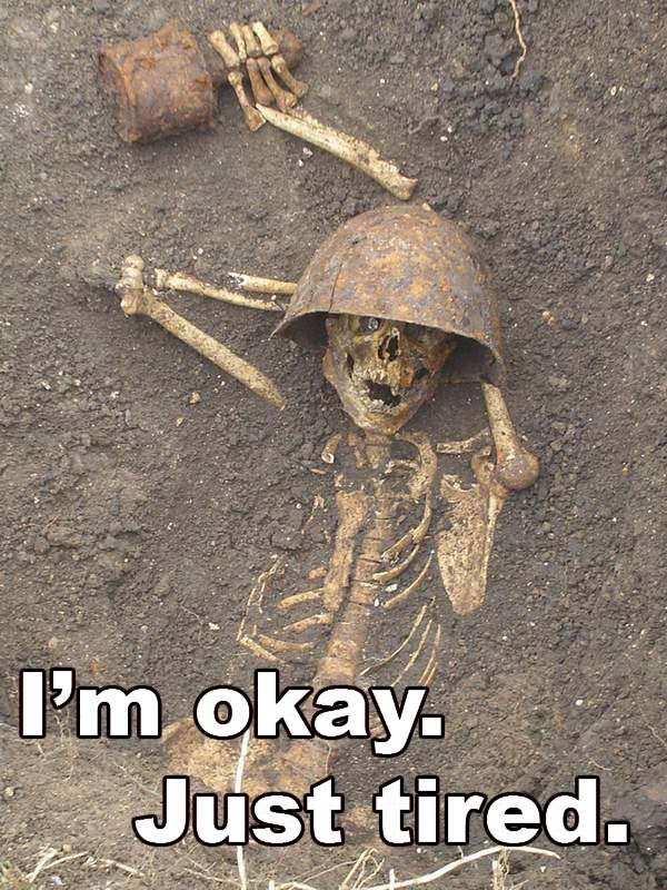 А я уже четвертый день лежу в углу подвала убежища на раскладушке с ебаным гриппом, жру аспирин и сироп от кашля. Охуительно мне повезло, что успел натаскать кучу жрачки туда, и река почти рядом. Думаю, выживу. Кстати, нужно ли жрать антибиотики и витамины?