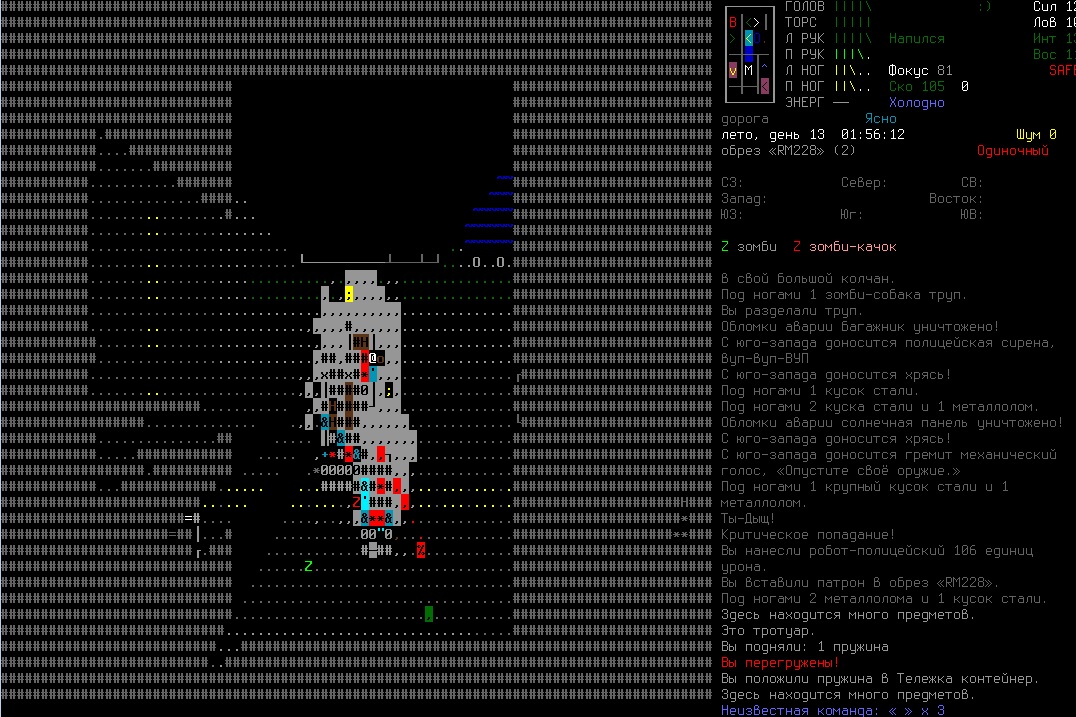 >>1586 Взял с собой в поход по городу ствол с глушителем на патрон .45 как раз, на всякий случай. В первом же городе нашел подвал с несколькими жителями и поехавшим военным, куча патронов и ак-47. Теперь надо пробраться в центр и осмотреть максимально бОльшую территорию. Обычно сплю в спальнике в центре какого-нибудь дома, утром смотрю из занавесок что и как. Еба, медвежье зрение вообще имба для ночных набегов.