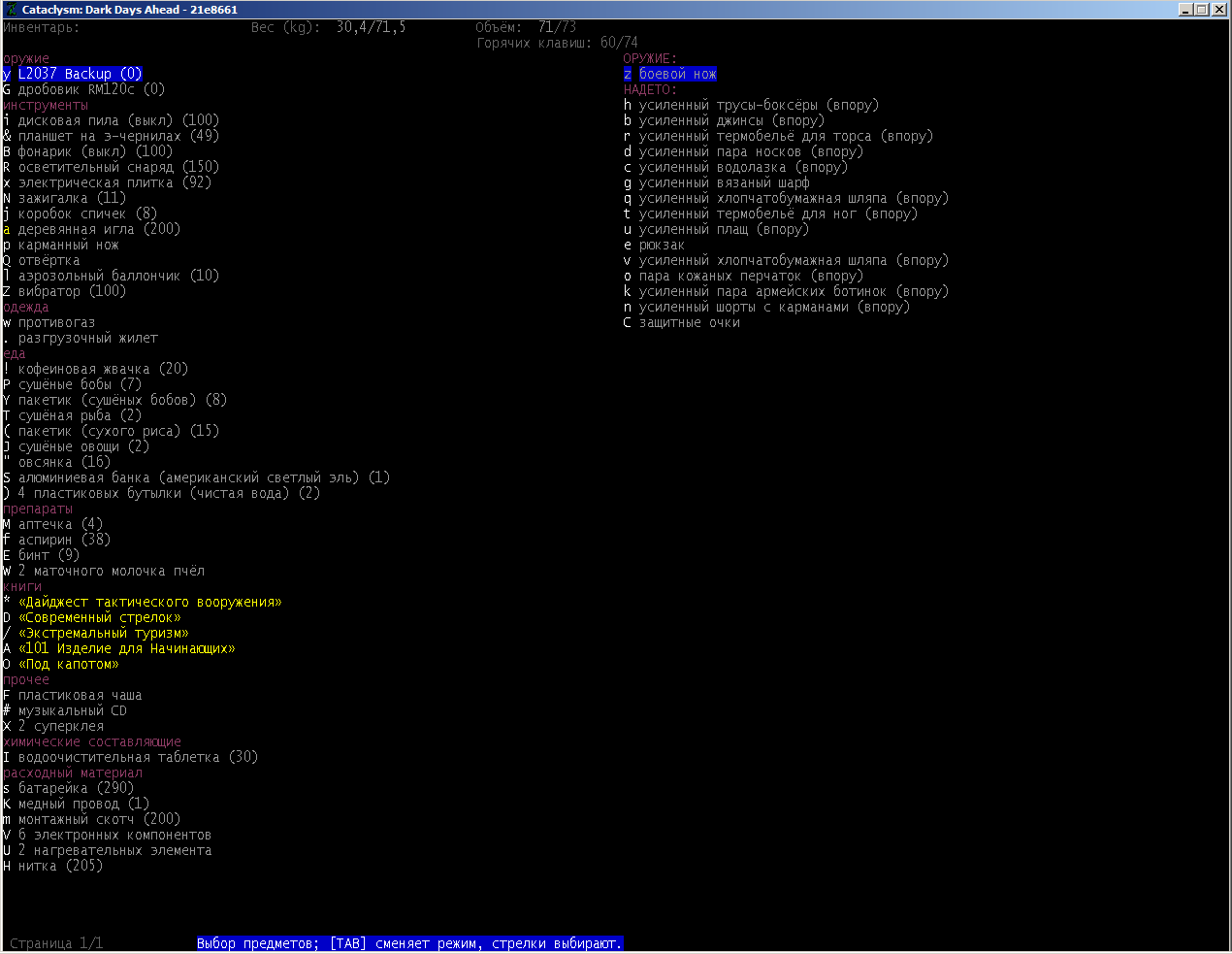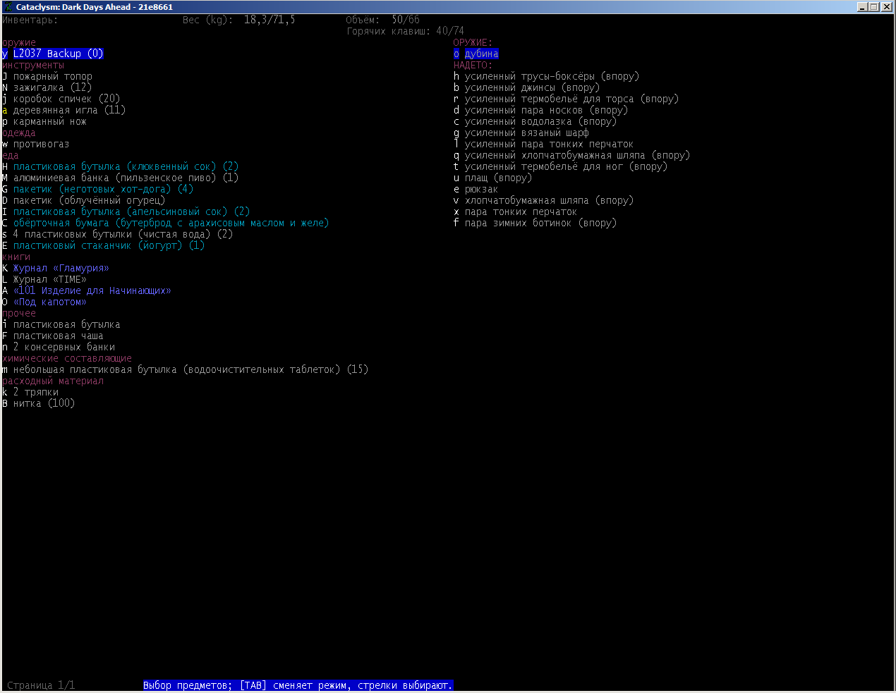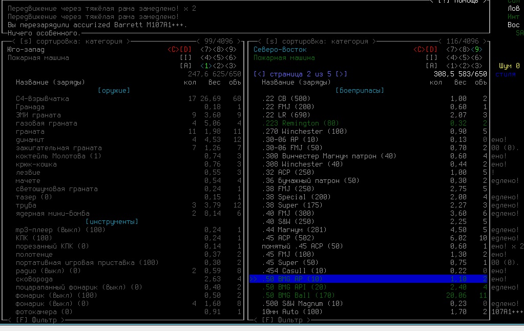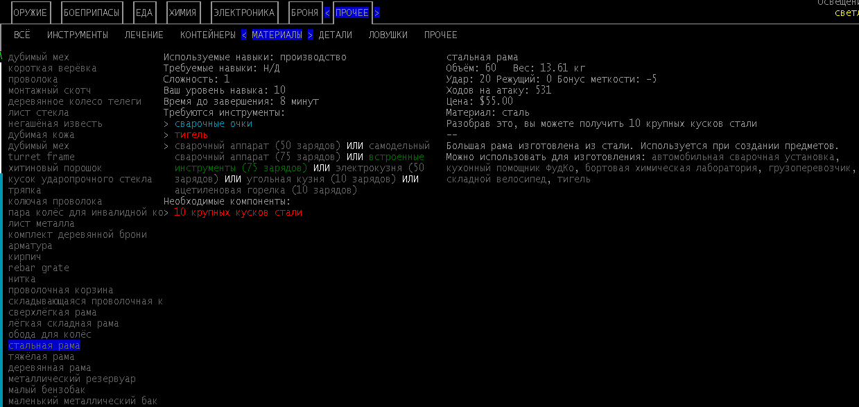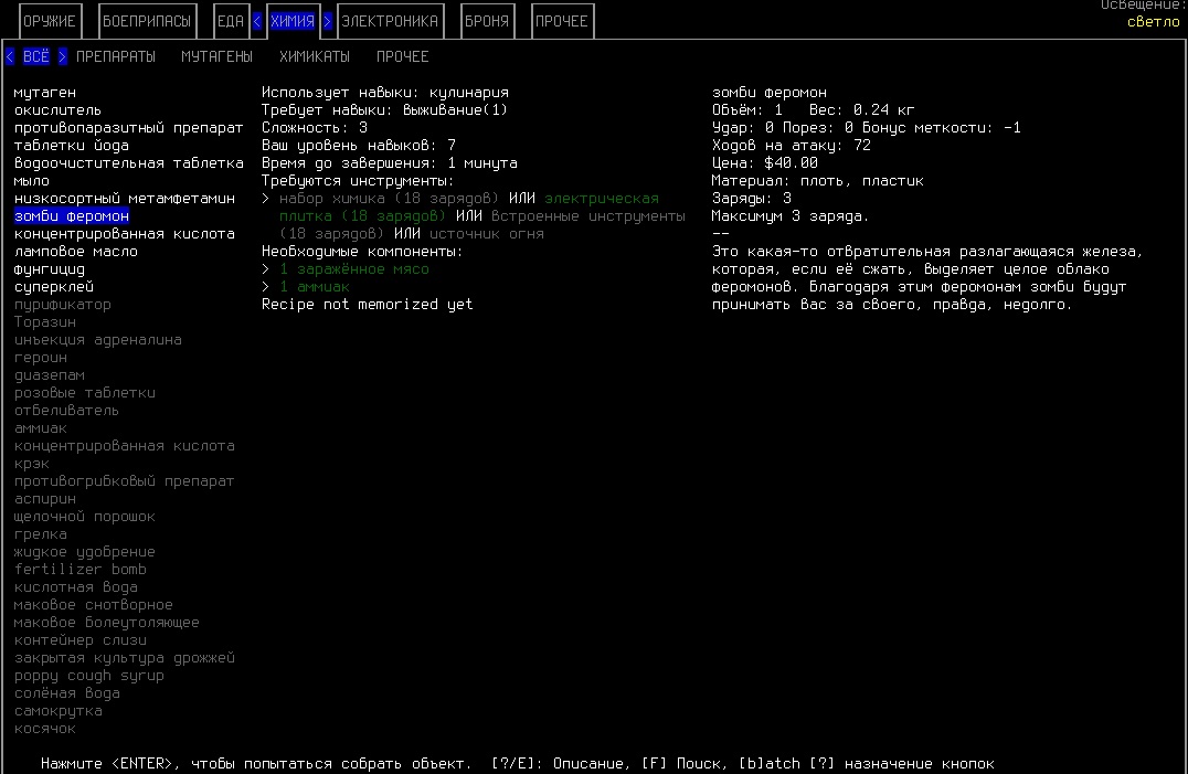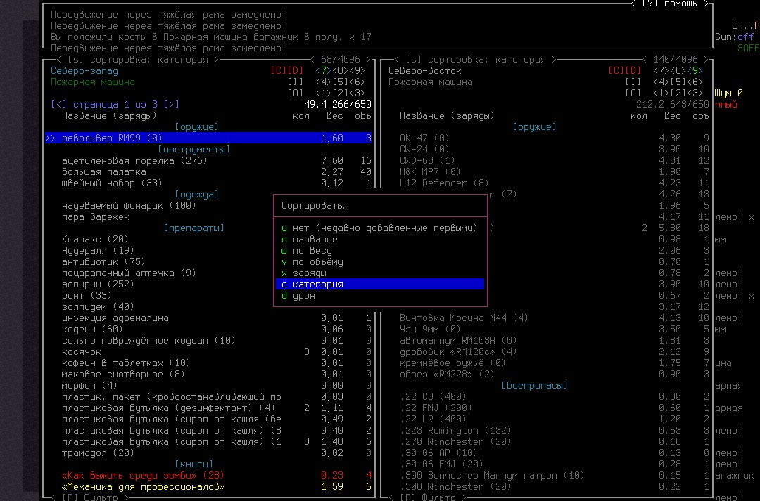 >>1619 Удобрения же вроде крафтить можно. Фургон бы броней какой-никакой обмазал, на всякий случай. Я решил немного отдохнуть в жилом комплексе и разобраться с шмотом, потестировал новый лук с метал. стрелами, арбалет пока отложил. Тут заметил то, о чем не подозревал за все время игры, блять!1 Теперь то все по полочкам расставлю.