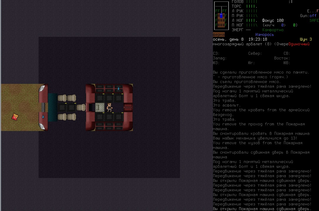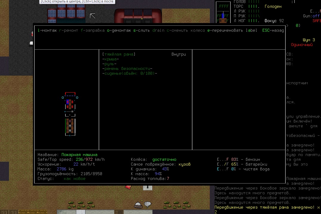 Подрезал пожарную машину лол, посливал топлива вокруг и отогнал в стойло, теперь буду смотреть что там к ней можно прикрутить. Какая-то хрень в дороге была, меня продувало ветром хоть все и закрыто было. Это может быть связана с тем что впереди где окно рама разбита?