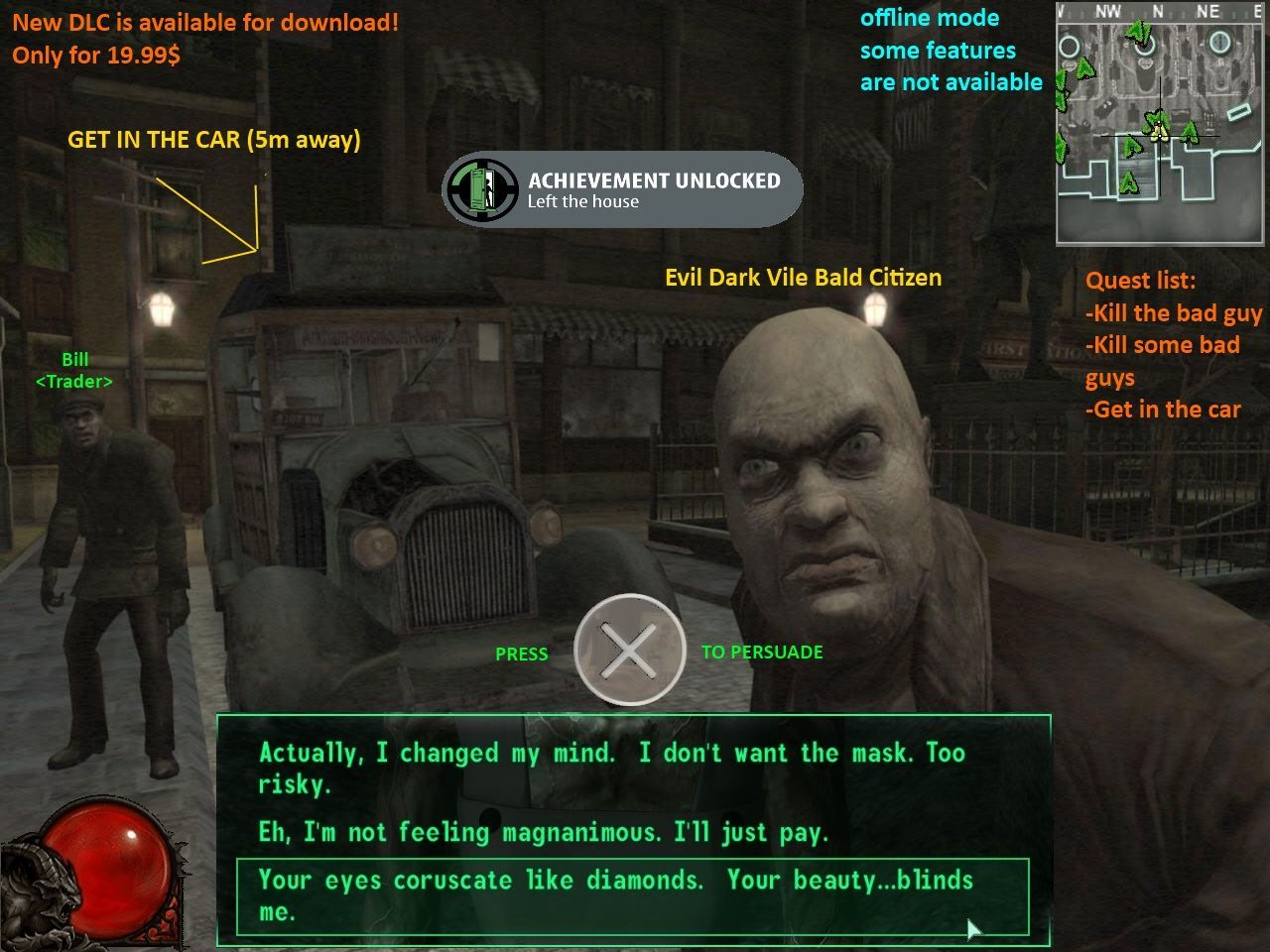 >>254 > Можно взять трейт "хипстер" или как там его, нацепить на себя кольца, браслеты, стильные очки, и почти без падения морали читать любые книги, лол. Да хуй с ними книгами, пытаешься что-то скрафтить под дождем посреди леса, ТЫ СЛИШКОМ МОКРЫЙ ДЛЯ КРАФТА ПАДИ ПОДСОХНИ.