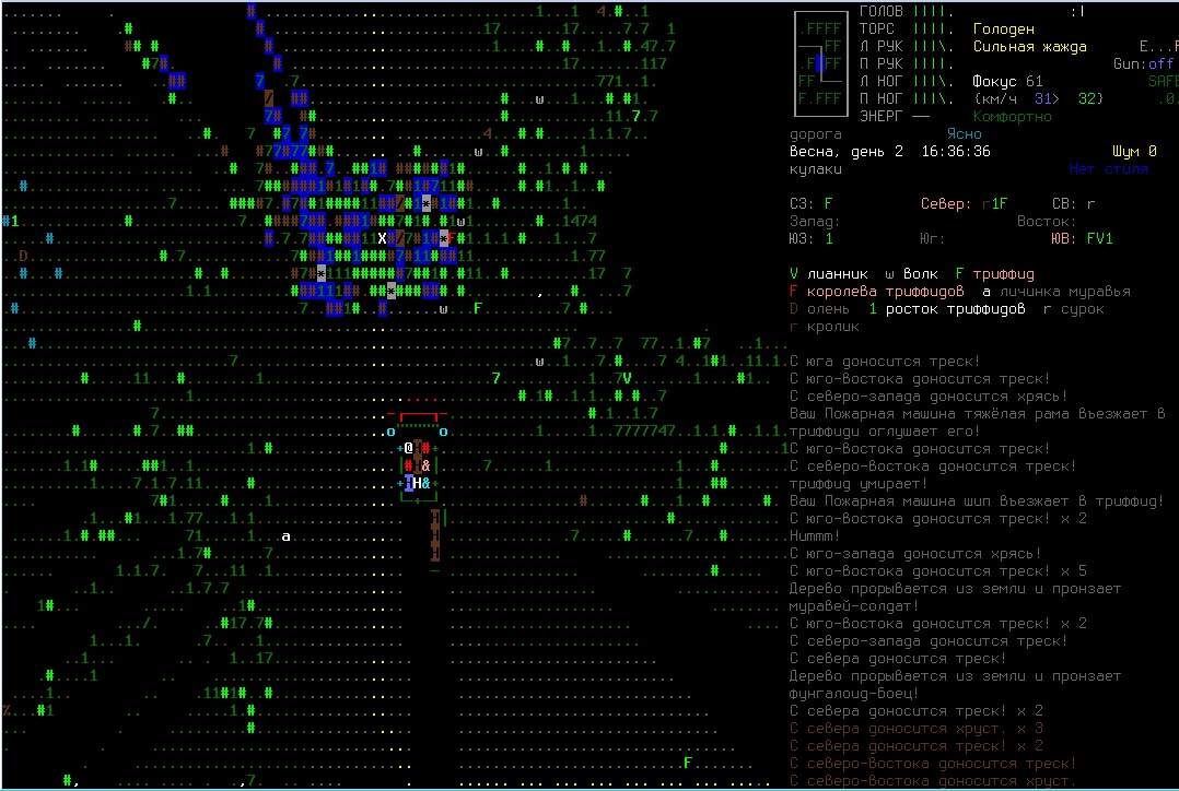 Телпо и лампово, кстати, мне понравилось. Есть всё, что нужно для выживания. С начальными инструментами и оружием более или менее повезло, но я всё равно буду пробовать луки так как нашёл книжку в городе рядом. Оттуда же вынес швейные наборы и немного одежды. Медикаментов никаких. Ещё на юге есть роща питательных триффидов, пока ем только их, париться с готовкой вообще не нужно. Традиционно, никаких скиллов вначале не брал. Пока веселюсь.