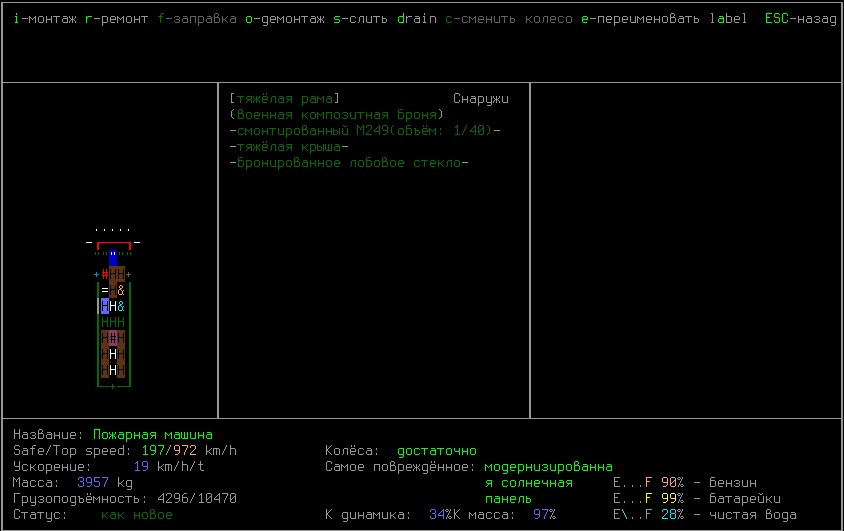>>1840 Перекатываюсь на пожарной машине, на крыше 9 мод. солнечных панелей и одна квантовая, спереди и сзади две лазорных турели, много жрут энергии, особенно во время набегов на города. Тупо оставляю машину и творю рядом всякие непотребства, никто не может подойти не замеченным. В багажном отсеке 9 багажников с разным хабаром, всё разложено по назначению. В бортах мед. препараты, снайперка для неожиданных ситуаций, теплая одежда, канистры для воды и топлива. Возле вод. сиденья три багажника под приборы первой необходимости, топор\багор, огнемет, иструменты. По бокам установлены непрозрачные двери для доступа к хабару\сварке, удобно машины распиливать не отходя от кассы, как говорится. Сделал еще и машинку для быстрого перекаты по городам, разведки. Установлены 3 колеса в один ряд, вроде как мотоцикл такой, гоняет шустро.