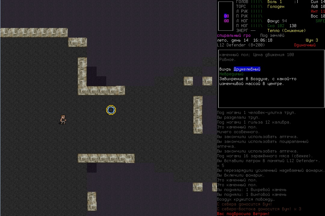 Спустился в пещеру, налутал кучу батареек и на нижнем этаже заблудился, там все спиралевидное, камни винтовые всякие. Напала какая-то розовая ёба, бывшая человеком когда-то, тусили еще 3 человека-улитки, просрался я знатно. Вроде нашел сейчас путь наверх, голодный и злой.