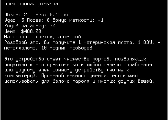 >>1668 Её и скрафтить самому можно, кстати. Она нужна, чтобы взламывать терминалы. Например, открыть доступ к лаборатории или военному бункерому с бункером надо быть ОЧЕНЬ аккуратным. Ещё её можно исполльзовать на платной заправке и выкачать всё топливо.