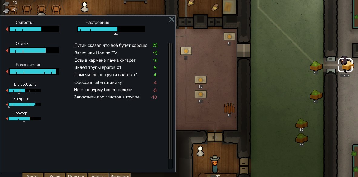 Запустил ради интереса - отличная игра оказалась, каждый раз разные истории, если обращать внимание на характер и прочие особенности колонистов. Такой вопрос: на пике мод или фотошоп? Если мод, то какой. Если в минусах насилие, это означает, что колонист склонен к насилию или, наоборот, его не приемлет?