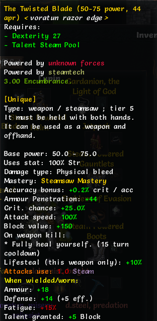 >>31615 Там кап у него, к сожалению. Находил этот меч персонажем с 100+ силы и гиганским размером - и всё что мне это дало это 125% скорости. А учитывая что это Т3 с паршивыми бонусами, оно явно проигрывает любому нормальному Т5 оружию. Все зависимости от размера.