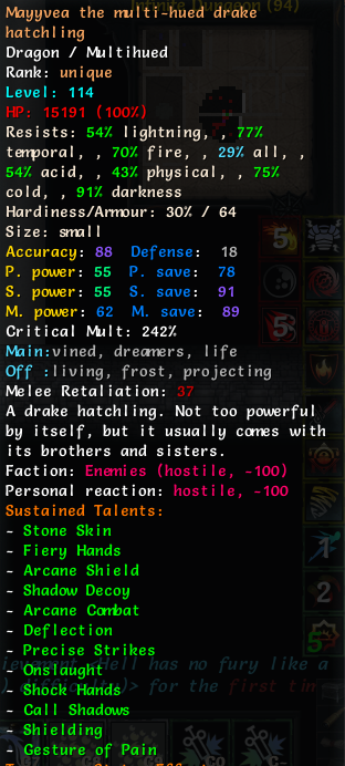 См. пикрелейтед. Дракоша, и бой с ним. Я его тупо затабал, одними только простыми атаками. Хп за время боя ни разу не упало ниже половины. Понятно что так не всех так нагло можно фейсролить. Бывают тут уники с 1к+ урона с плюхи даже через все мои щиты, или с особо вредным талантами.