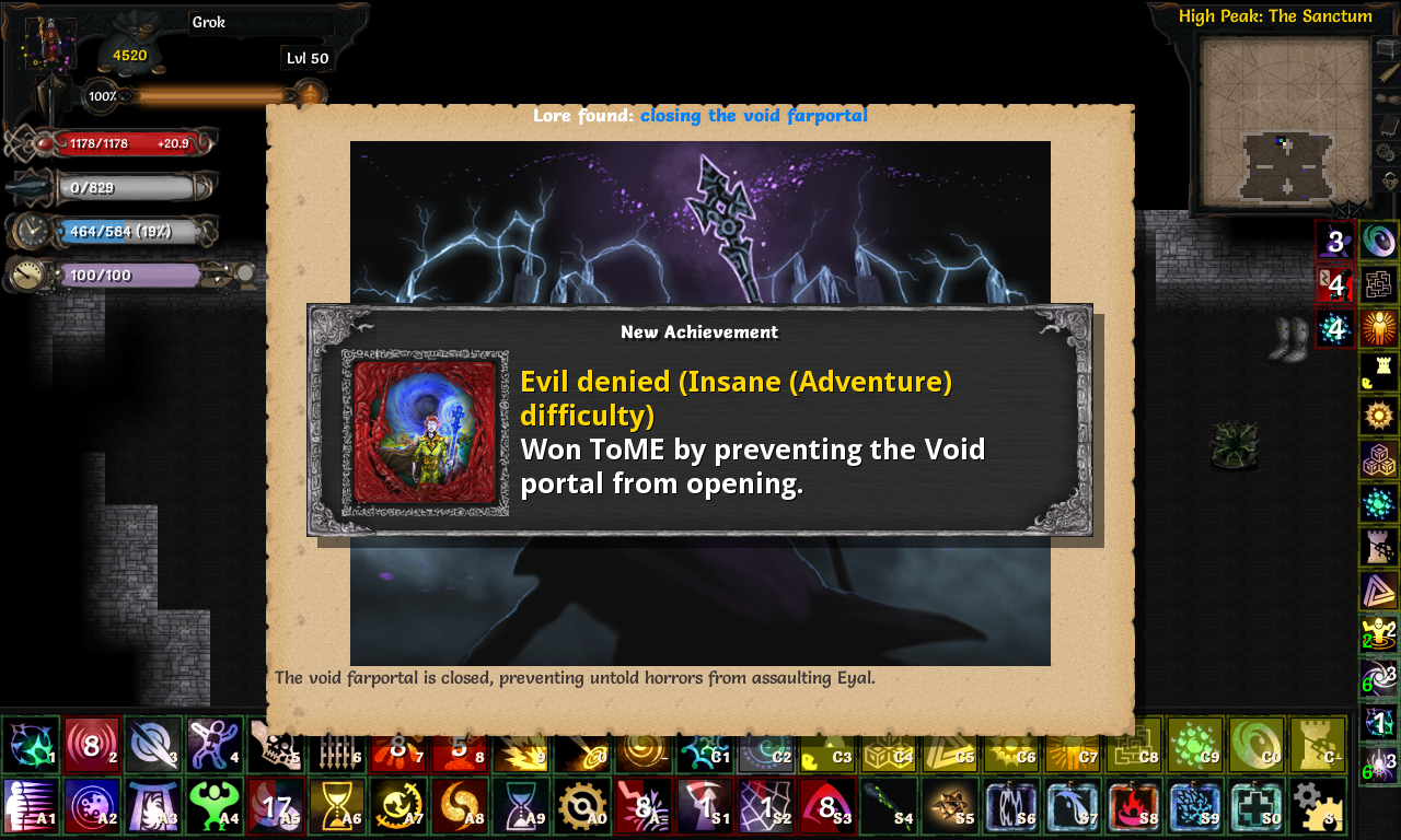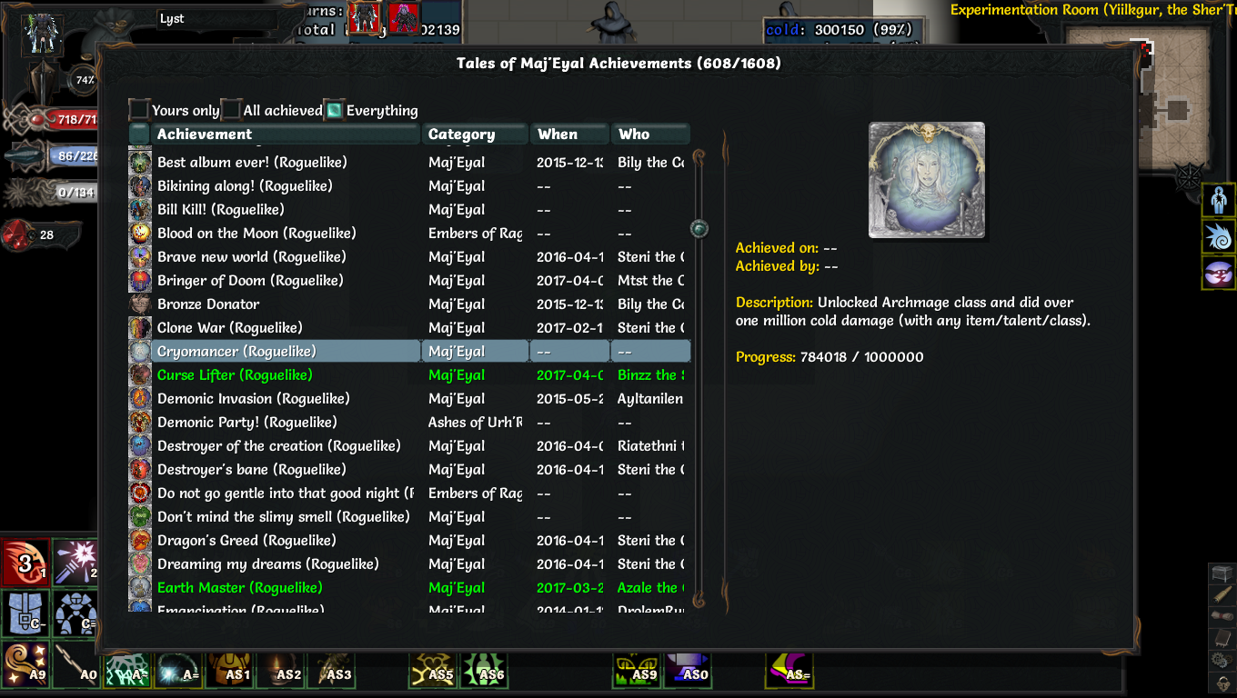 Что меня в TOME раздражает, так это система ачивок. Не, ачивки в рогаликоподобных играх нужны, особенно, когда в них какой-то доп. челлендж и все такое. Да и тут они в целом хороши.