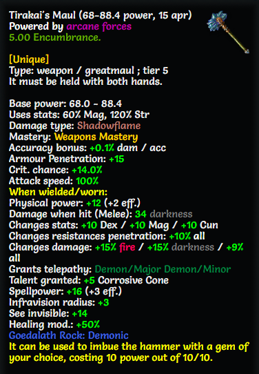 Если Tirakai's Maul нету, то выфармить довольно легко в стартовой локации думбрингера, в самом начале игры. Первый босс дропает артефакт с шансом, где-то 15-20 процентов, может чуть меньше на низких (найтмар/нормал) сложностях, тут не знаю.