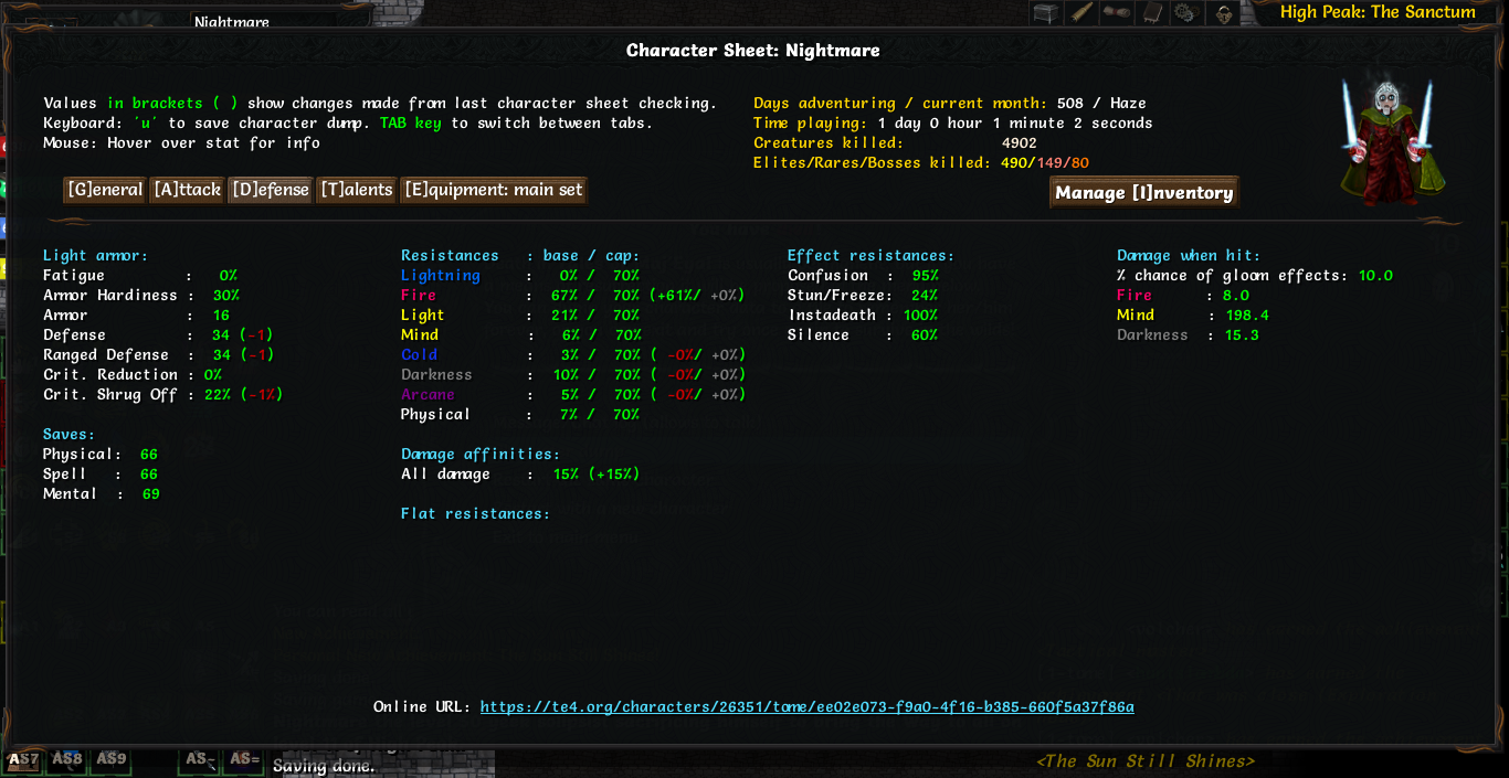 Прошел за Йека\Солипсиста. И это было одно из моих самый странных прохождений. Насколько он стеклянный в начале(две смерти, ваншоты от раров в т1), настолько же он неубиваемый ближе к концу. Пикрил - финальный дамп. Да. Нет нихуя ни армора, ни резов, ни антитатусов. Всё что было из статус клинеров это полторы инфузии. И даже так вторую половину игры я тупо профейсролил - полуголым персонажем, с запоротым билдом. И даже прайды все чистить поленился.