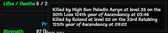 Был у меня Арканблейд, ваншотнувший (вроде бы, давно это было, я точно не помню) мастера и вообще всех. Полез я им на Атаматона (до прохождения мейнквеста и на 40 левеле) и закономерно соснул. Правда я тогда еще не знал о его рефлекте и ваншотнул себя сам. Был у меня солнцепаладин блокмастер. Убивал всех с контратак, нанося под 1к урона за атаку. Сам ощущался практически бессмертным, так что я тупо всех закликивал одной рукой. В итоге умер, пытаясь закликать орка-антимага. Сам не заметил, как он вырубил мне все сустейны и выеб. Последним успешным лучником решил пролезть в пещеру дрейков, появившуюся в Дайкаре. Сгорел за два хода. Хоть повезло, что это был скелет с доп жизнью.