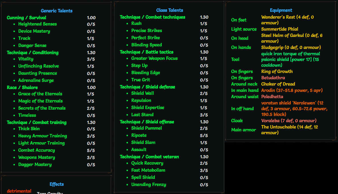 >>31620 >В тяжелой металлической броне не покастить особо скиллы, так? Покастить, никаких проблем. Формально тяжелая броня часто добавляет +fatigue, который увеличивает стоимость многих талантов. Но его влияние столь незначительно, что не стоит и обращать внимание, да и уменьшить его можно прочими бонусами. Если у тебя нет талантов которые в тяжелой броне вообще не работают(стелс, мобильность) - то она всегда предпочтительна. >Лучше не таскать на маге arcane disrupt? Ни в коем случае не таскать, он он тебе мешает кастовать, и выключает сустейны. Сфейливший каст телепорта когда у тебя осталось пол шишки хп - это последнее что тебе нужно. >Враги умеют еще дизраптить, верно? То что вешают на тебя враги работает немного по другому. Там и молчание, и сжигание маны. А arcane disrupt для мага это... как постоянно ходить с конфузией.