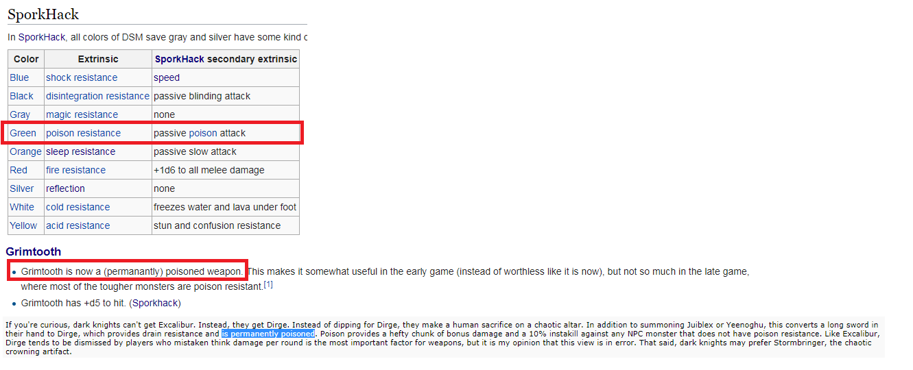 Это образно. В споркхаке можно действительно стартануть хаотичным рыцарем и получить артефактный меч в награду за человеческие жертвоприношения. Вот тут подробнее: https://forum.rpg.net/archive/index.php/t-466187-p-3.html >If you're curious, dark knights can't get Excalibur. Instead, they get Dirge. Instead of dipping for Dirge, they make a human sacrifice on a chaotic altar. In addition to summoning Juiblex or Yeenoghu, this converts a long sword in their hand to Dirge, which provides drain resistance and is permanently poisoned. Емнип, это первый новый артефакт в споркхаке, второй - какая-то нейтральная дубинка.