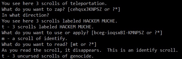Nethack - это не рогалик, это нечто большее, это тайный культ, члены которого проводят особые и очень страшные ритуалы, включающие пытки, жестокие убийства, совокупление в могилах, пожирание трупов. Также они отличаются абсурдными поступками, например: пинают раковины, молятся на унитазах, носят с собой мёртвых ящериц, пишут руны на кровати перед тем как лечь спать, купаются в фонтанах, всегда носят перчатки, и никогда не примеряют чужие вещи.