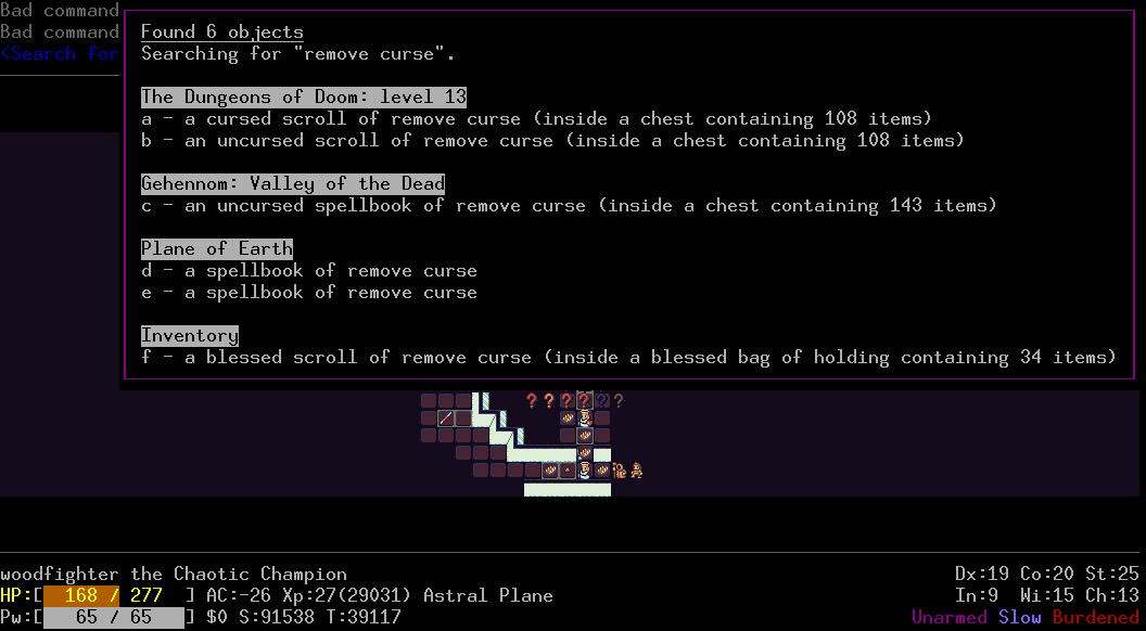 >>29434 >лютейший гринд, монстры буквально из воздуха спавнятся, и спавнятся, и спавнятся Неправда, нет такого, может быть ты путаешь это эффектом саммонинга? Некоторые монстры способны это делать сами либо палочками вызывания, и тогда могут зафлудить пространство. Еще бывает что набегают отряды орков или эльфов, причем набегают волнами, в unnethack тоже такое сделано.