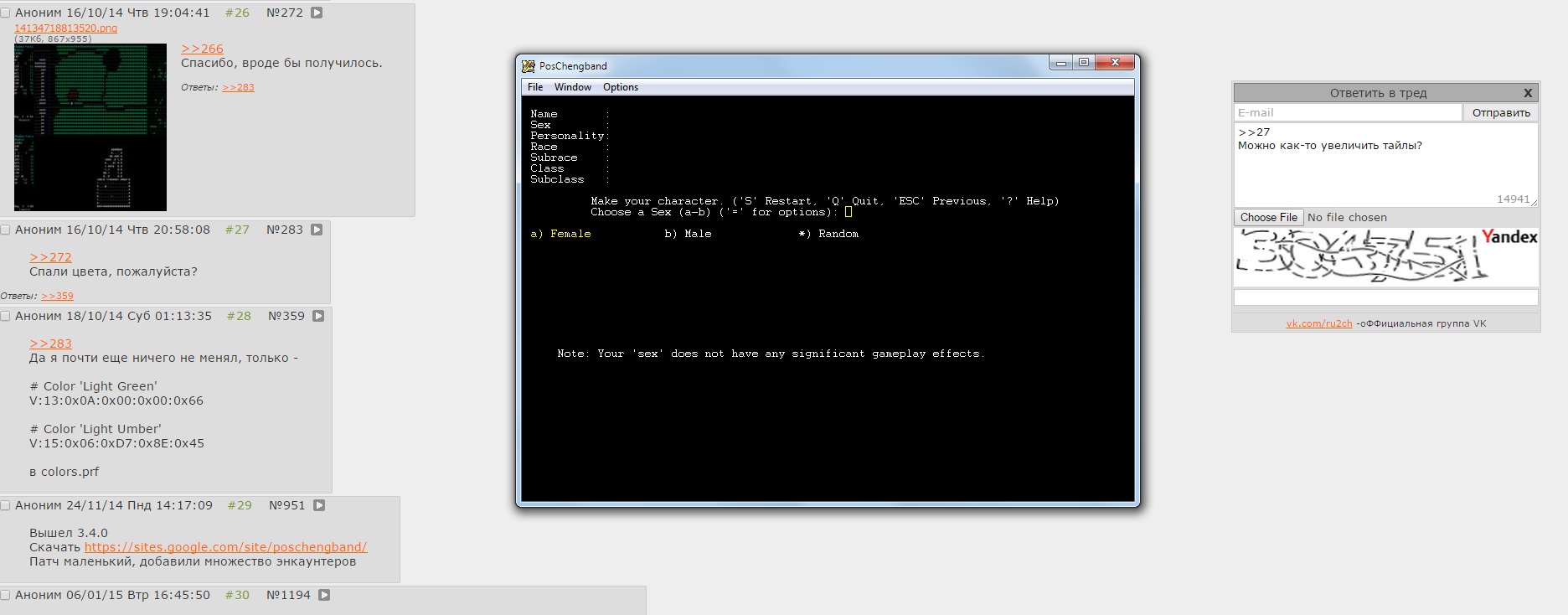 >>23718 Тут от оригинального банда очень мало осталось, другая игра вообще, так что можно >>23726 Есть же, там правда последняя новость была 2013, но обновления игры в разделе files до сих пор выходят, https://sites.google.com/site/poschengband/