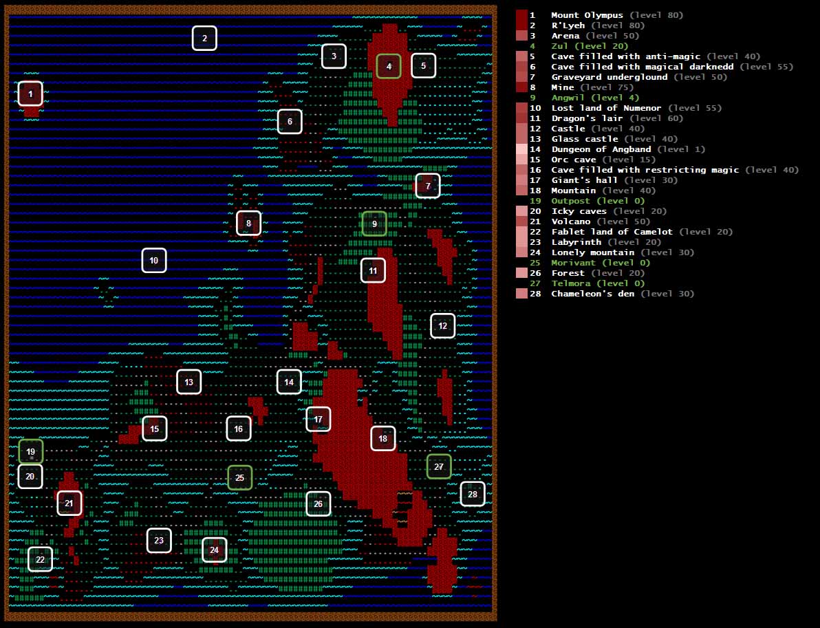 >>150 Z-Angband, открытый мир, реки, озера, руины, лагеря орков, троллей, подземелья с артефактами, различной степени сложности, лавовые и кислотные озера есть. Города с гильдиями и разными унылыми квестами. Или FAAngband, более линейные локации разных типов. Можно начинать сразу с высокоуровневых, в зависимости от расы. Дают на выбор пару особых трейтов в начале, и вроде после убийства стражей.
