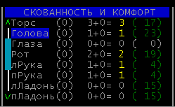 5. Что значат цифры в графе скованность и комфорт (меню персонажа)?