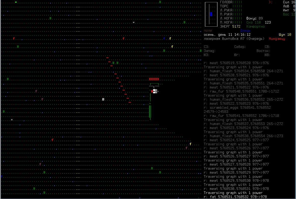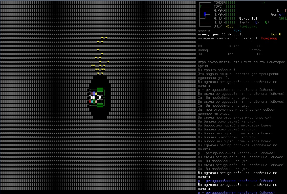 8. Шихофринию очень оказуалили. Раньше глюки были постоянными и мелкими. Из-за чего ты то выпускал последний патрон в несуществующего халка, то забивал хуй на джаббервока, думая что он глючный, а на следующем ходу он разрывал твою сраку. Теперь глюки появляются очень редко - раз-два в день, и сразу понятно что это глюки - на близком расстоянии от тебя возникают вещи, которых тут точно быть не должно, вроде турели, ужаса амигары, твоей мамаши и Шайи Лабаффа одновременно. Из неприятных последствий шизофрении только "плохое предчуствие", которое даёт -50 к настроению и лишает возможности читать и крафтить. А ещё где-то на пятом дню мой персонаж КАК ЗАОРЁТ НАХУЙ, из-за чего пришлось унимать подоспевшего курильщика.